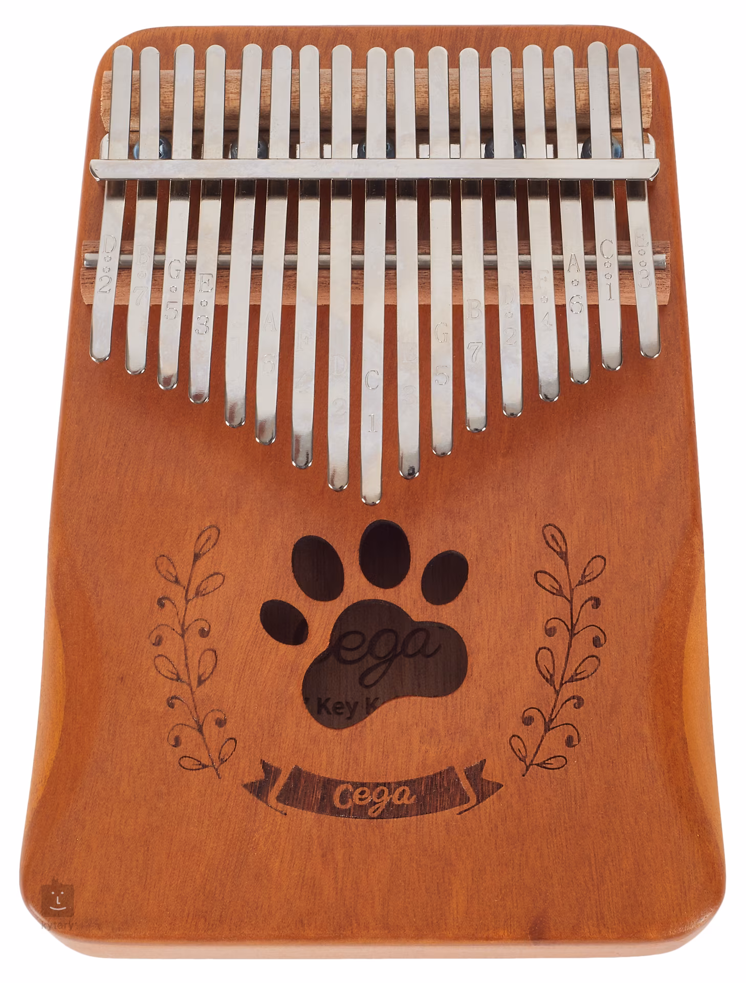 Kalimba je unikátní melodický nástroj, který přidá do vaší tvorby nebo live performance unikátní a nezaměnitelný prvek. Může sloužit k doprovodné nebo sólové hře. Kalimby od firmy Cega jsou vyráběny z kvalitních dřevin, sušených pouze přirozenou cestou, což jim poskytuje skvělé zvukové vlastnosti a maximální stabilitu. Tento model je vyroben z akáciového dřeva a vybaven ozvučnicovou dírou, která zvuku nástroje přidá na síle a hutnosti. Klávesy z karbonové oceli pak nástroji poskytují čitelný a hlasitý, avšak stále příjemně vřelý zvuk. Na klávesách najdete také vyryté tóny, což pomůže v orientaci zejména začínajícím hráčům.