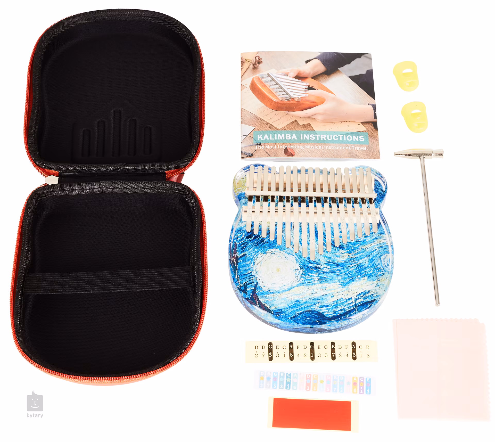 Kalimba je unikátní melodický nástroj, který přidá do vaší tvorby nebo live performance unikátní a nezaměnitelný prvek. Může sloužit k doprovodné nebo sólové hře. Tento model je netradičně vyroben z průhledného akrylu, který je velice odolný a poskytuje skvělé zvukové vlastnosti. Klávesy z karbonové oceli pak nástroji poskytují čitelný a hlasitý, avšak stále příjemně vřelý zvuk. Na klávesách najdete také vyryté tóny, což pomůže v orientaci zejména začínajícím hráčům.