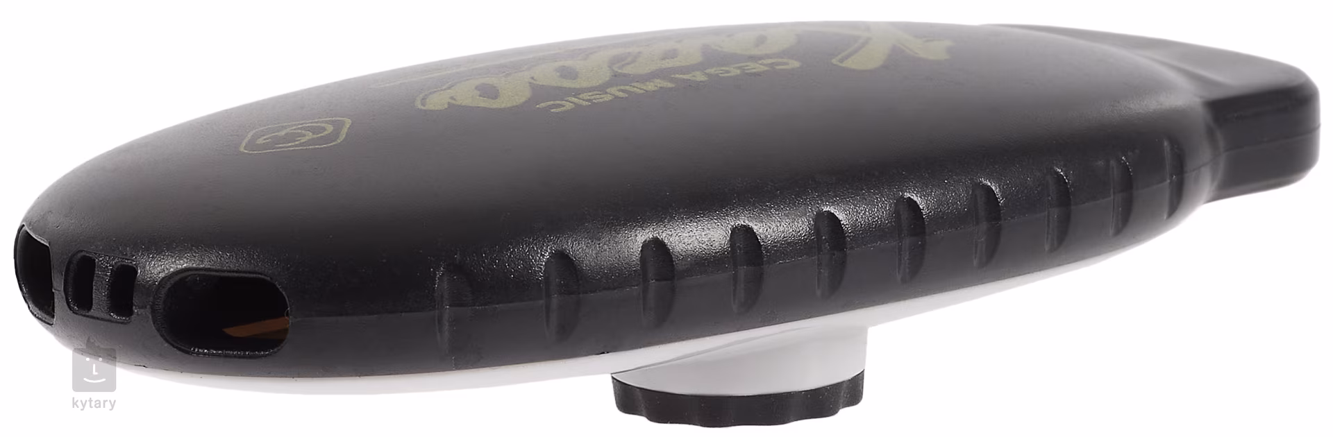 Plastové double-hole kazoo se dvěma otvory/membránami. Tento design vám umožní broukat melodii v nižším i vyšším ladění bez nutnosti měnit membránu kazoo. Otáčením krytů lze nastavit pnutí membrány a měnit tak zvukovou odezvu kazoo.
