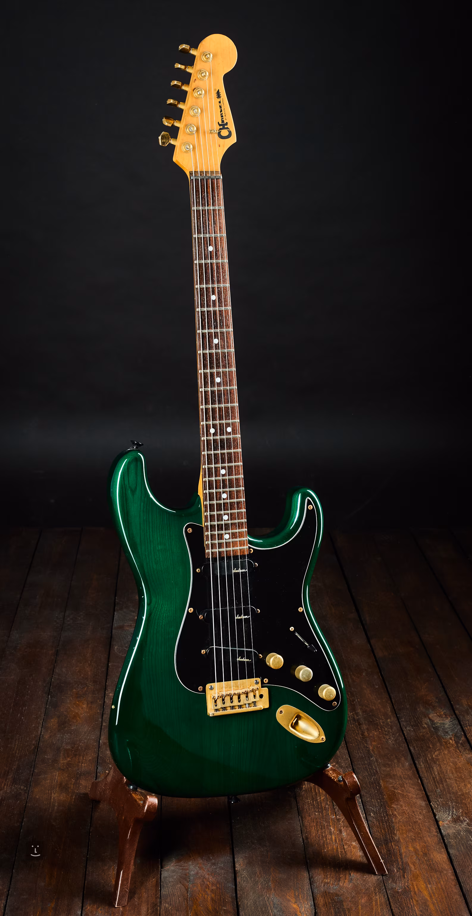V kombinaci zelené transparentní barvy na těle se zlatým hardwarem je tento nástroj poměrně vzácný.