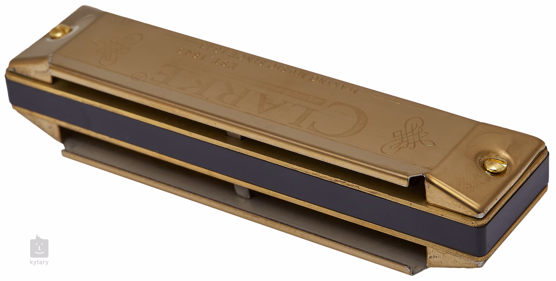 Diatonická foukací harmonika, tj. bluesovka, značky Clarke představuje dobrou volbu začínající muzikanty. Korpus nástroje je zhotoven z odolného plastového materiálu ABS. Harmonika dále disponuje kryty z nerezové oceli s pozlaceným finišem a zdobnou rytinou, mosaznými a stříbrnými hlásky a mosaznými plátky (0,1 mm).