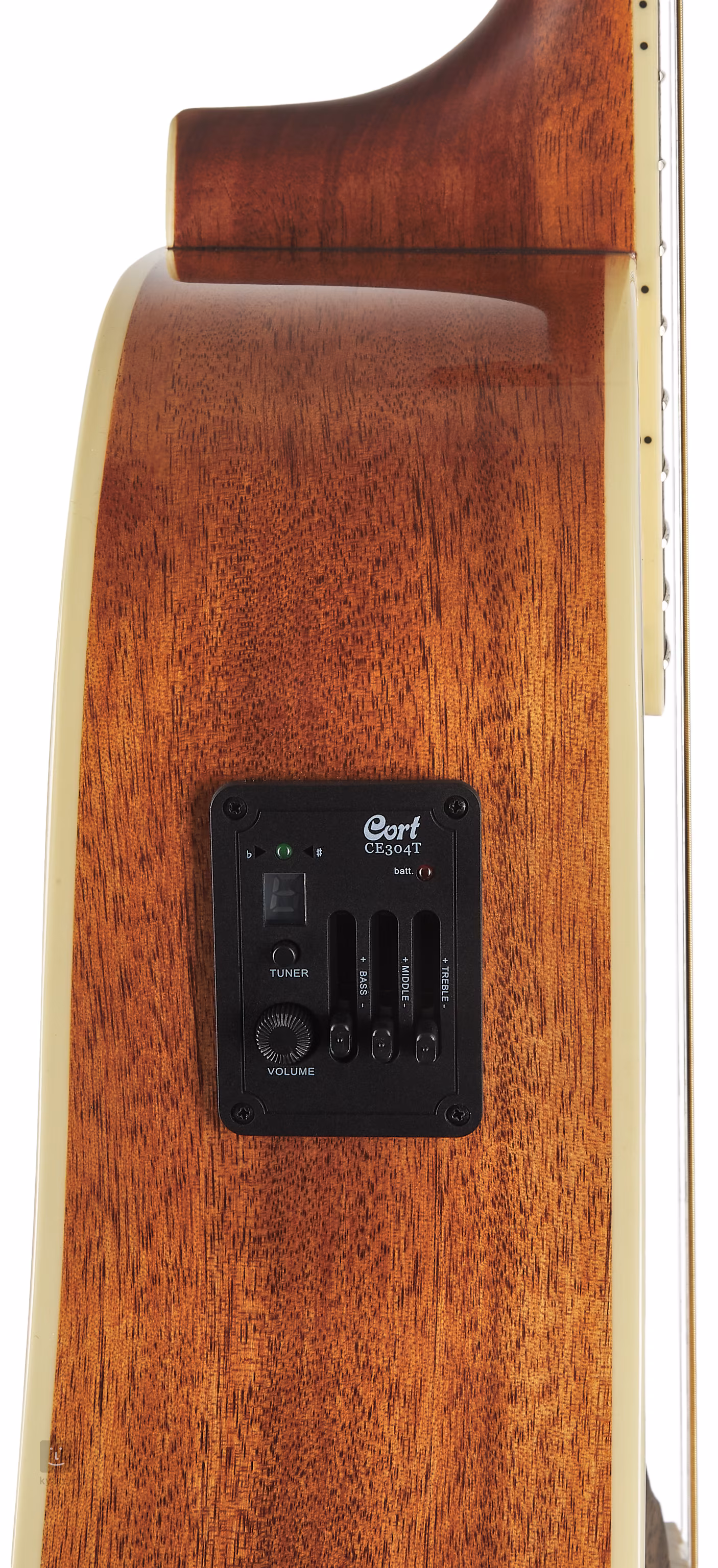Cort AD 880CE NAT je elektroakustická kytara typu Dreadnought. Vrstvený korpus nástroje je složen z přední smrkové desky a zadní desky a lubů z mahagonu. Tato osvědčená kombinace dřev poskytuje nástroji vyvážený zvuk s potřebnou dávkou zvukové průraznosti i vřelosti. K mahagonovému krku je přilepen hmatník z exotického dřeva merbau osazený dvaceti pražci, orientaci po jeho ploše usnadňují poziční tečky.