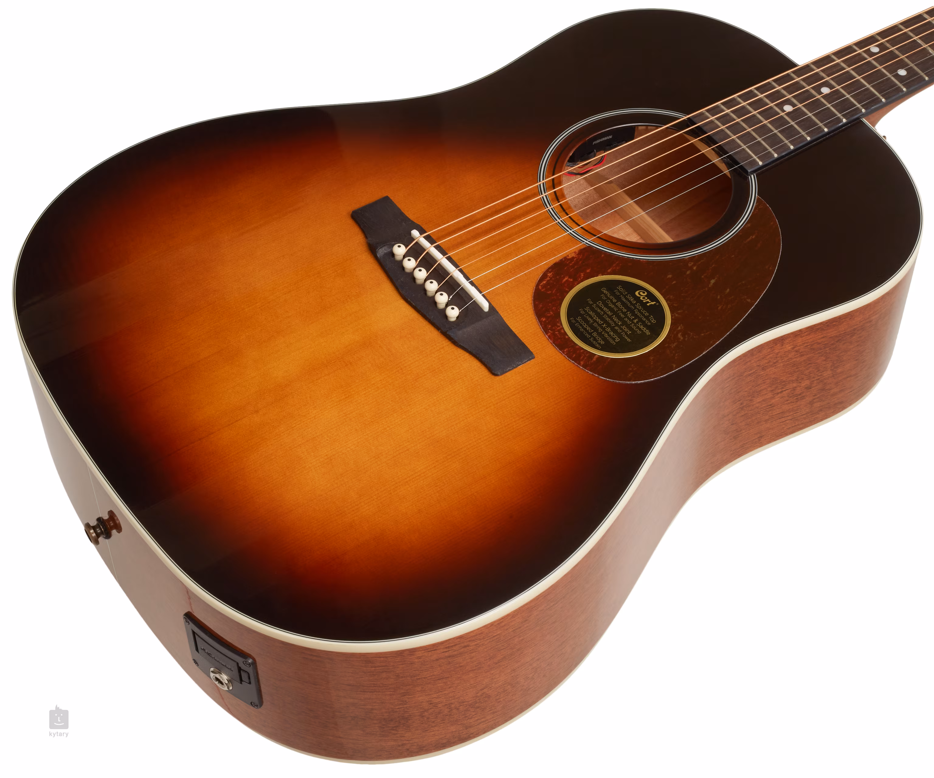 Kytara je osazena elektronikou Fishman Sonitone s ovladači Volume a Tone decentně umístěnými do ozvučnicového otvoru nástroje.