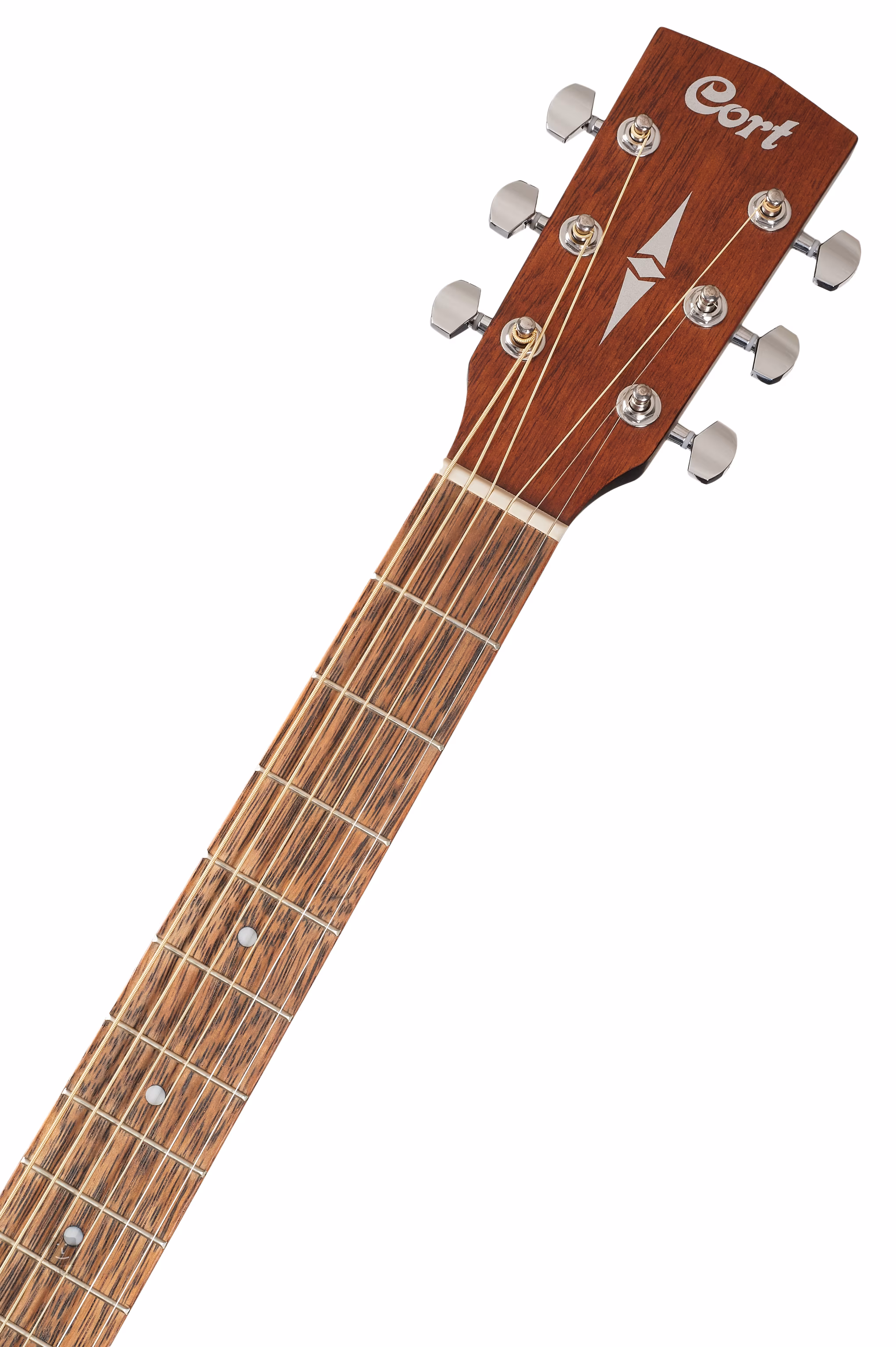 Přední deska modelu Cort Earth 60 je zhotovena z masivu smrku Sitka, zadní deska a luby jsou vyrobeny z překližovaného mahagonu. Tato osvědčená kombinace dřev poskytuje nástroji vyvážený zvuk s potřebnou dávkou zvukové průraznosti i vřelosti. K mahagonovému krku je přilepen hmatník z ovangkolu osazený dvaceti pražci. Krk je k tělu připevněn pomocí pevného rybinové spoje (dovetail joint), orientaci na hmatníku usnadňují poziční tečky.