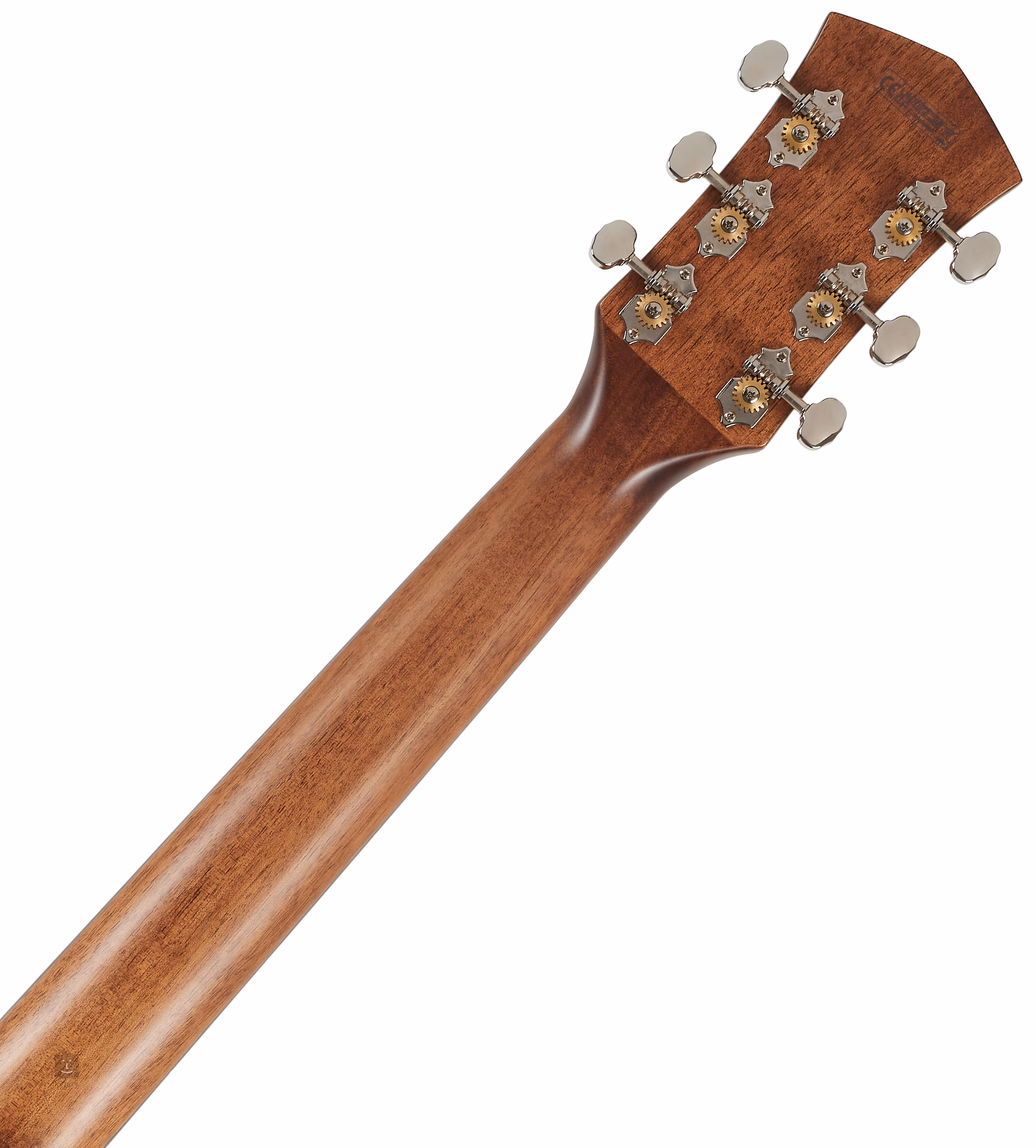 K mahagonovému krku s pohodlným C profilem je přilepen palisandrový hmatník osazený dvaceti pražci. Orientaci na hmatníku usnadňují poziční tečky. Struny jsou přes nultý a sedlový pražec z pravé kosti uchyceny ve firemních otevřených mechanikách a palisandrové kobylce. Stylové zpracování podtrhuje obvodová lemovka z imitace slonoviny a rozeta a výložka přední desky ve vzoru rybí kosti (herringbone).
