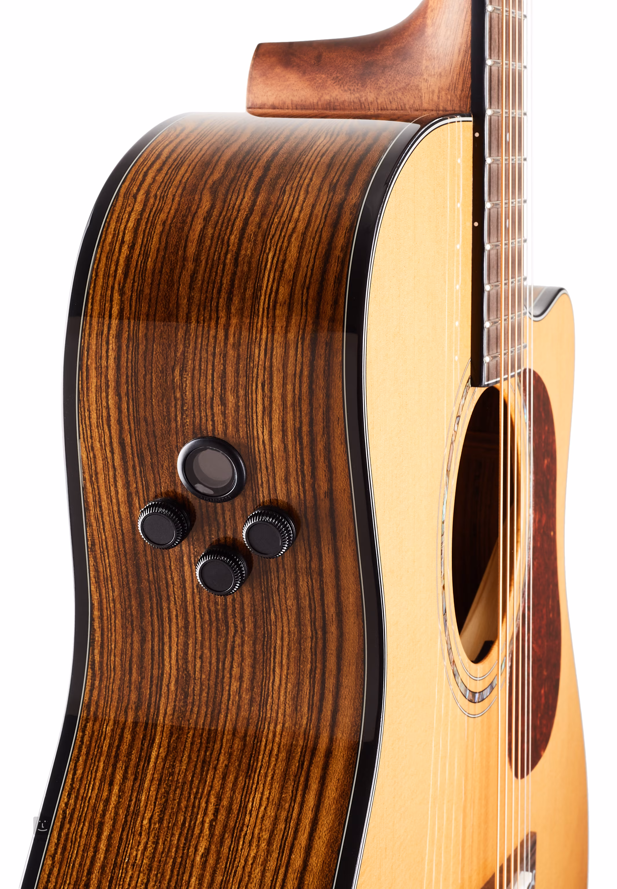 K mahagonovému krku je přilepen hmatník z ebenu makassar osazený dvaceti pražci s upravenými hranami (hand-rolled), orientaci po jeho ploše usnadňují polohové tečky a zdobná intarzie na dvanáctém pražci. Stabilitu krku a celkové konstrukce nástroje posiluje ořechová výztuha krku a připojení k tělu metodou DoubleLock, které spolu s tenkou vrstvou UV laku podporuje přirozenou akustickou rezonanci dřeva.