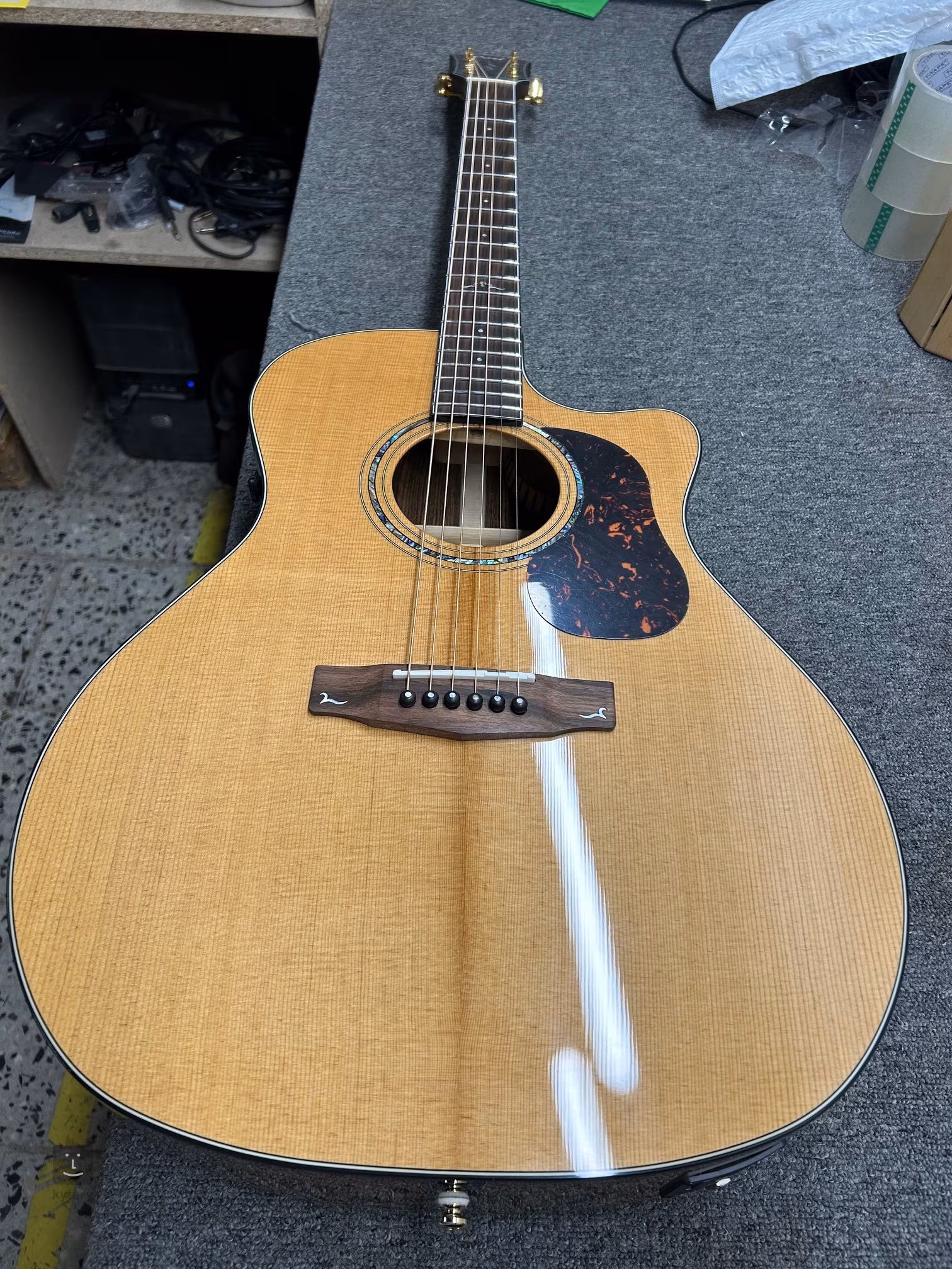 Uchycení strun v ebenové kobylce a jejich vedení přes sedlo a nultý pražec z pravé kosti zaručuje optimální přenos vibrací do těla nástroje a dobrý sustain. Stabilitu ladění zajišťují mechaniky Deluxe Vintage Gold ve zlatém provedení. Kvalitu zpracování podtrhují tradiční dekorativní prvky v podobě zdobné perleťové rozety (Abalone), černé obvodové lemovky těla, ebenových kolíčků do kobylky a pickguardu z imitace želvoviny.