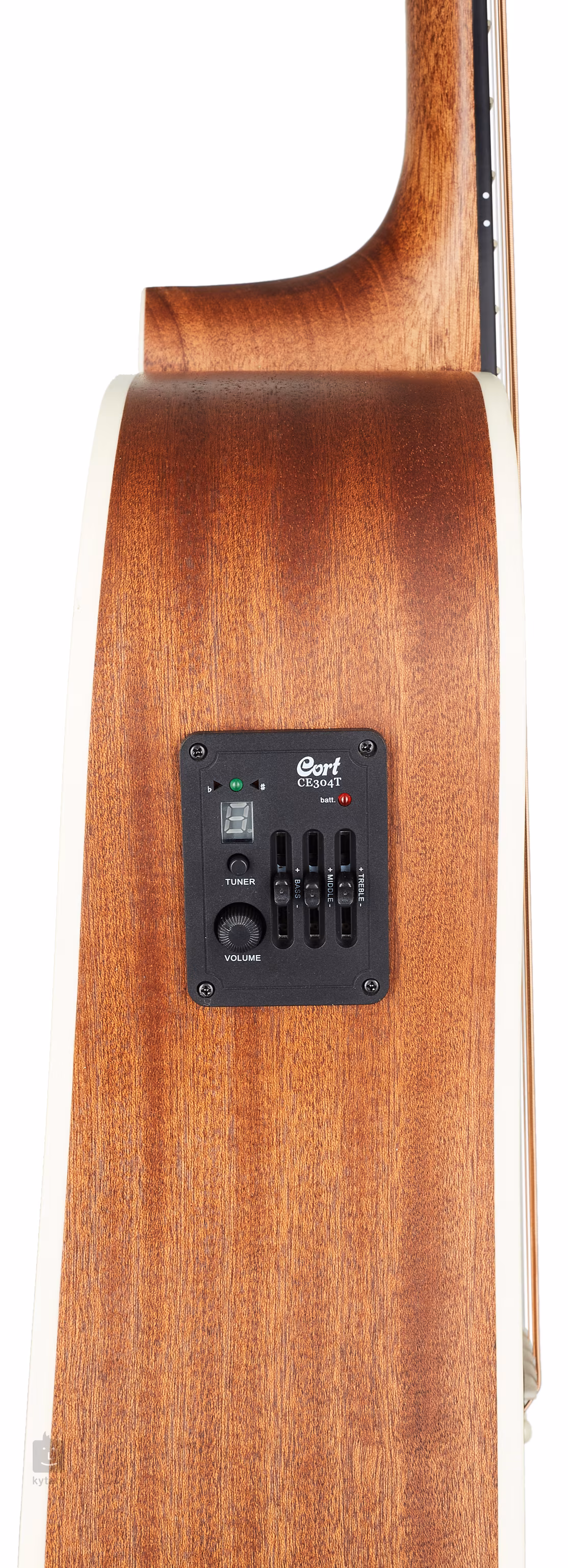 O ozvučení nástroje se stará firemní preamp Cort CE304T s integrovanou ladičkou.