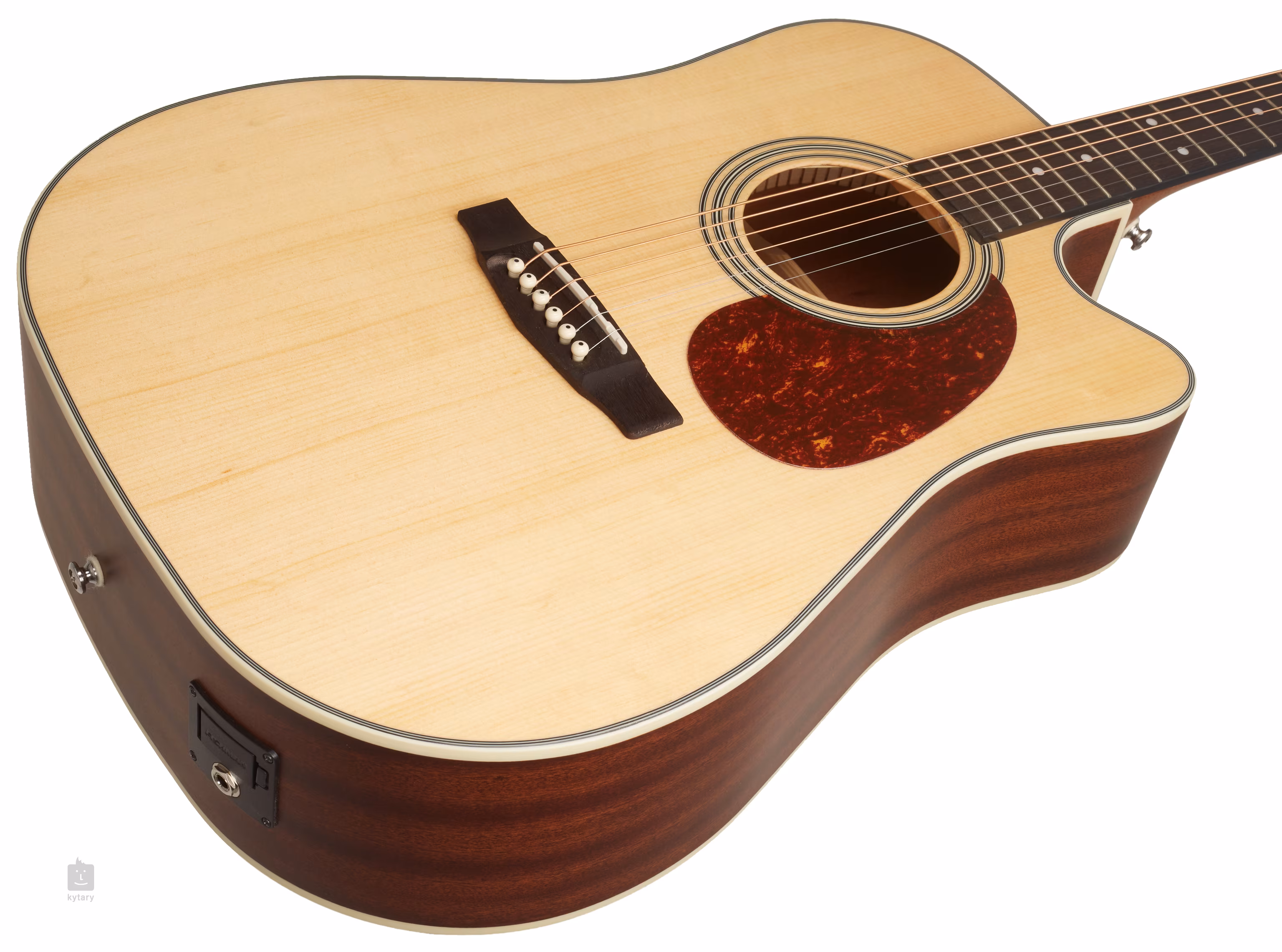 Uchycení strun ve speciálně tvarované kobylce z ovangkolu a die-cast mechanikách zaručuje kytaře dobrý sustain a stabilitu ladění. Tradiční designové prvky doplňuje zdobná rozeta složená z prstenců z ABS, světlá lemovka a praktický pickguard z imitace želvoviny.