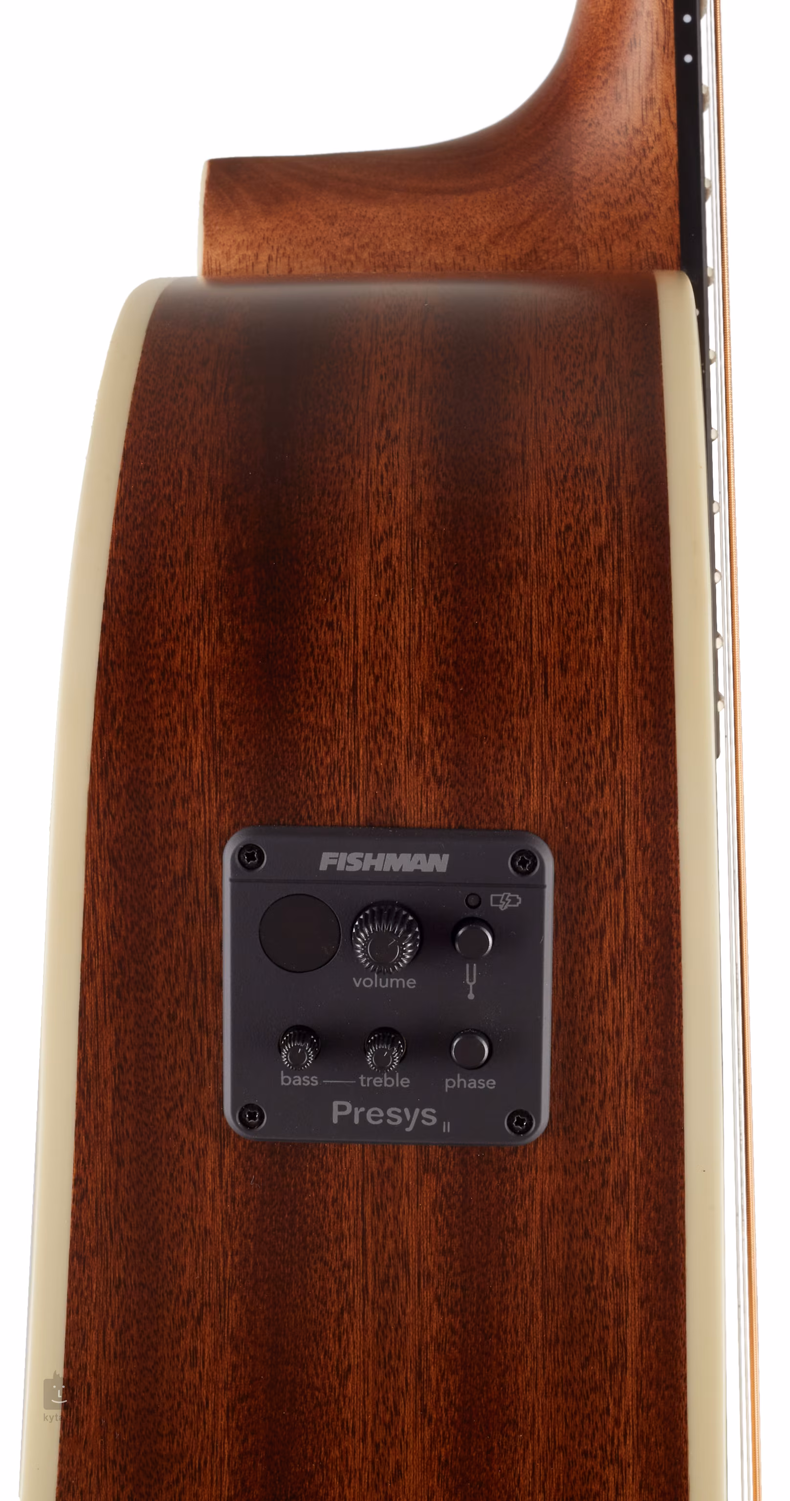 O ozvučení nástroje se stará podkobylkový piezo snímač Fishman Sonicore a aktivní elektronika Fishman Presys II s dvoupásmovým ekvalizérem, ovladačem hlasitosti, funkcí Phase a integrovanou ladičkou.