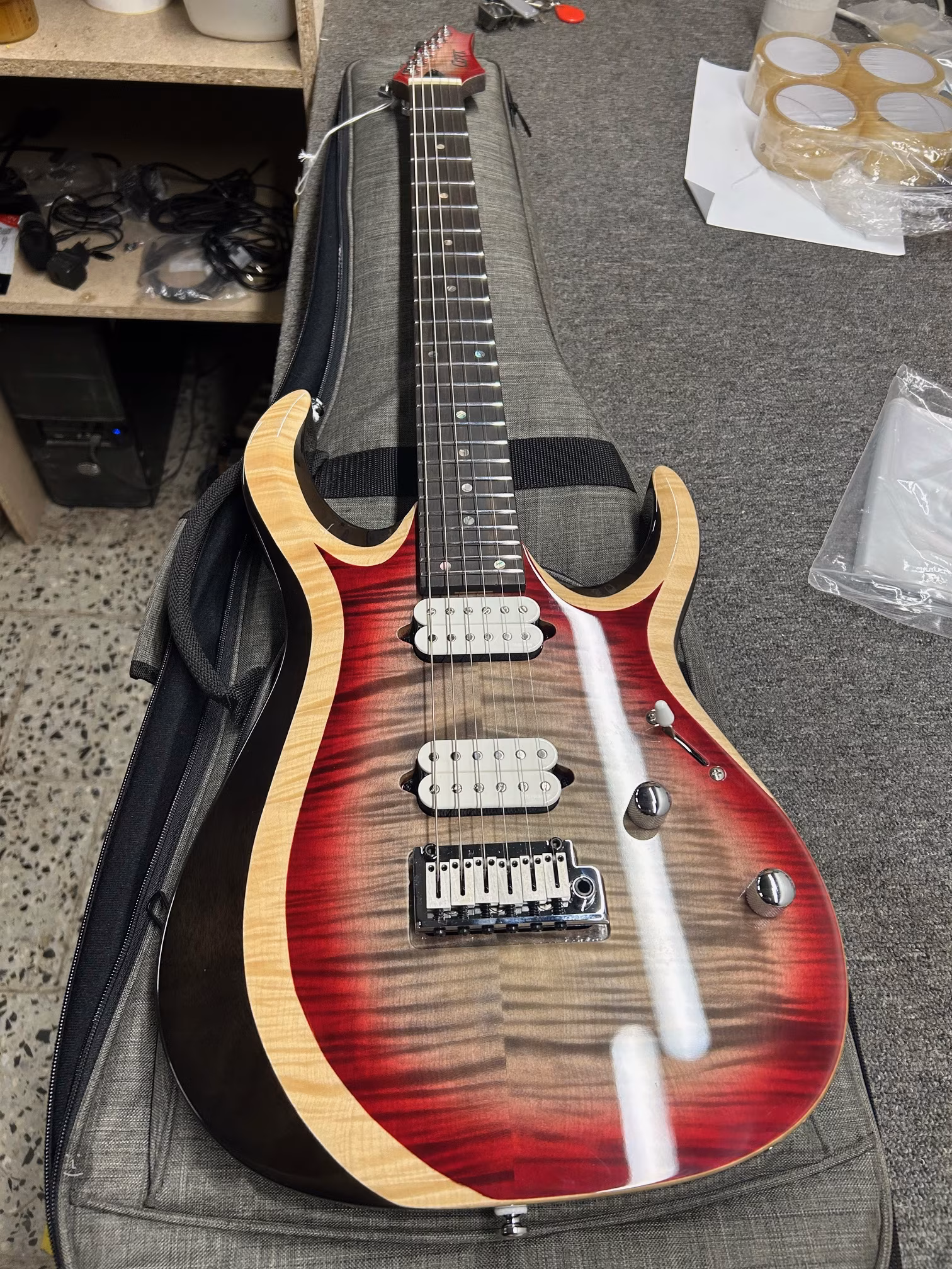 Model X700 Duality II LVB je dalším krokem značky Cort směrem k vyšším modelovým řadám s plně profi parametry, který je nutno brát vážně. Kytara už na první pohled upoutá moderním dotaženým designem s efektní vrchní dýhou z fládrovaného javoru na mahagonovém těle a působivou barevnou úpravou Lava Burst. K přišroubovanému krku ze tří kusů javoru a panga panga je přilepen ebenový hmatník osazený čtyřiadvaceti pražci z nerezové oceli. Orientaci na hmatníku usnadňují perleťové poziční tečky (abalone) a luminiscenční tečky na boku.
