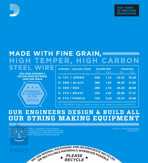 Struny pro elektrické baskytary značky D’addario z řady XL Nickel Wound jsou oblíbené pro svůj vyvážený tón a zvukovou všestrannost, díky čemuž je využijete v jakémkoliv hudebním stylu. Právě proto se v rámci portfolia značky D’addario jedná o naprostý bestseller. Struny jsou vyrobeny z šestrihranného ocelového jádra s vysokým obsahem uhlíku a jsou potaženy poniklovanou ocelí. Jejich výroba probíhá ve Spojených státech amerických.