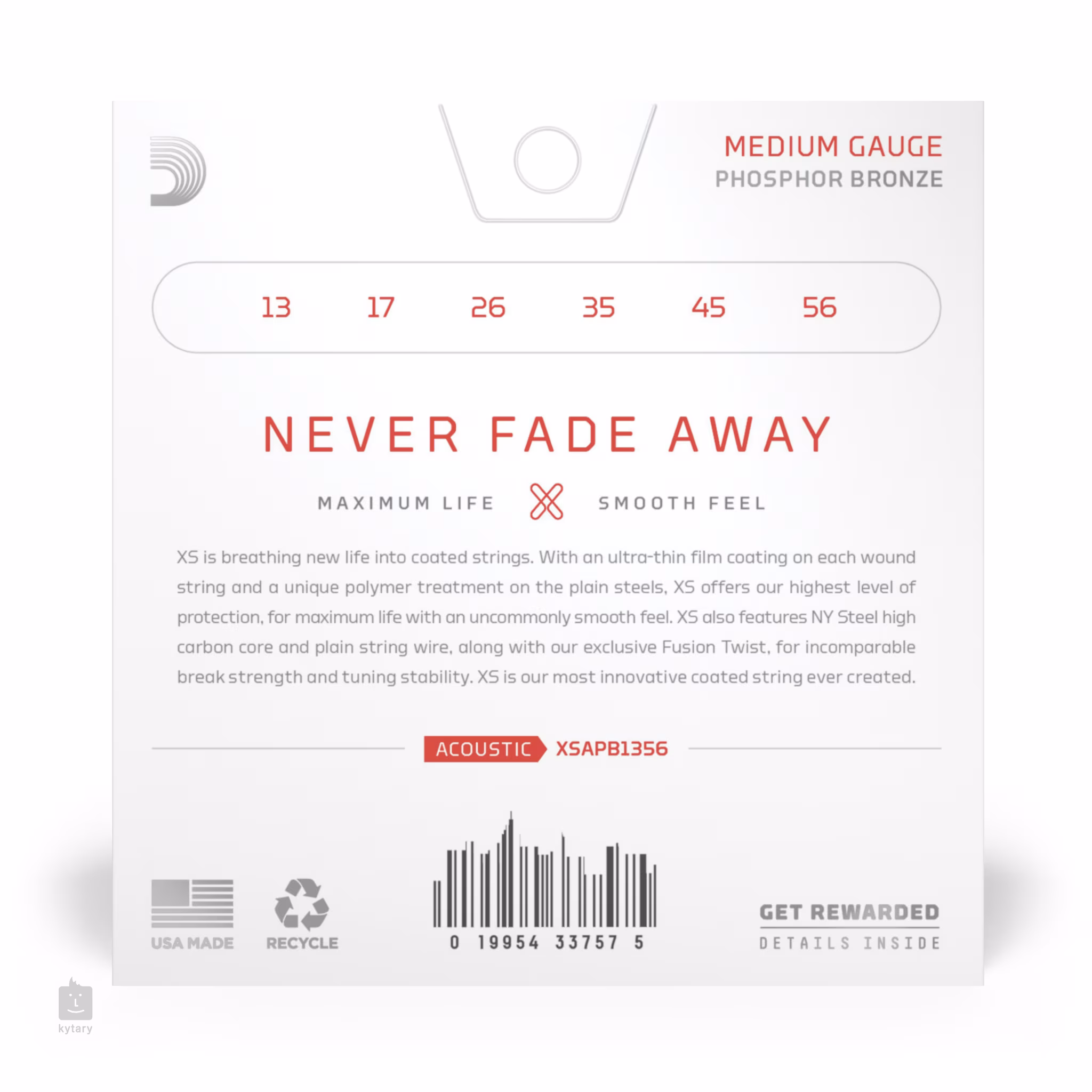 Nejvyšší řada strun XS z dílny společnosti D'Addario představuje technologický průlom na poli potahovaných strun a patří mezi špičku toho, co můžete v katalogu této světoznámé firmy najít. Tyto struny v sobě kombinují to nejlepší z řady XT, ale posouvají laťku ještě o krok výše. Neuvěřitelně tenký potah jim dodává bezkonkurenční životnost a příjemně hladký povrch, přičemž nikterak neubírá na skvělých zvukových vlastnostech, kterými jsou struny D'Addario pověstné. Díky šestihrannému ocelovému jádru s vysokým podílem uhlíku a vinutí z fosforbronzu nabízí vřelý a mohutný zvuk s vyváženým podílem všech frekvencí, dlouhým sustainem a skvělou dynamikou. Zároveň se pyšní výbornou stabilitou ladění a vysokou odolností. Jedná se zkrátka o špičkové struny, které vám vydrží velmi dlouho. V tomto balení najdete velmi tvrdé struny s tvrdostí 13.