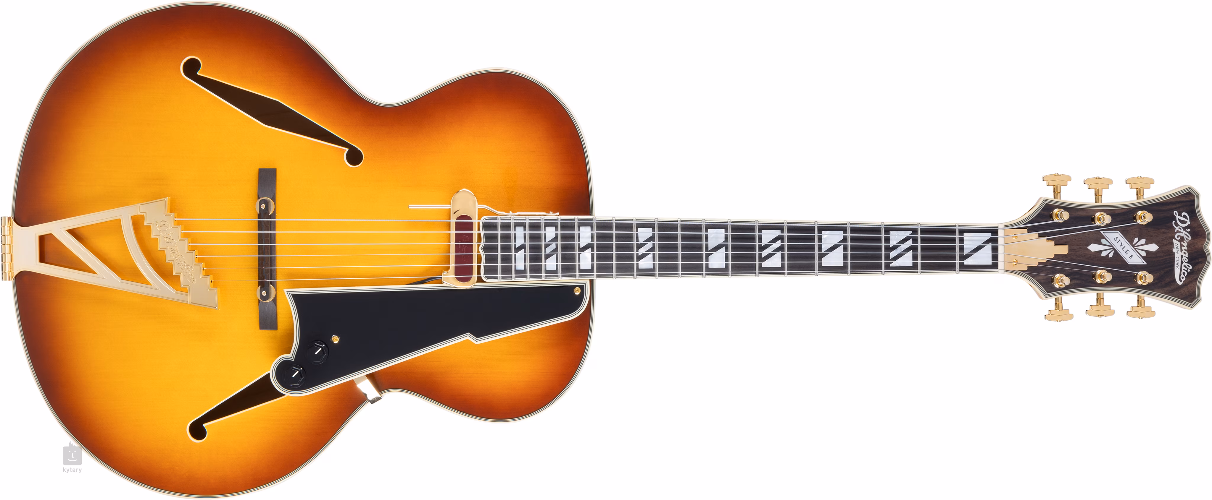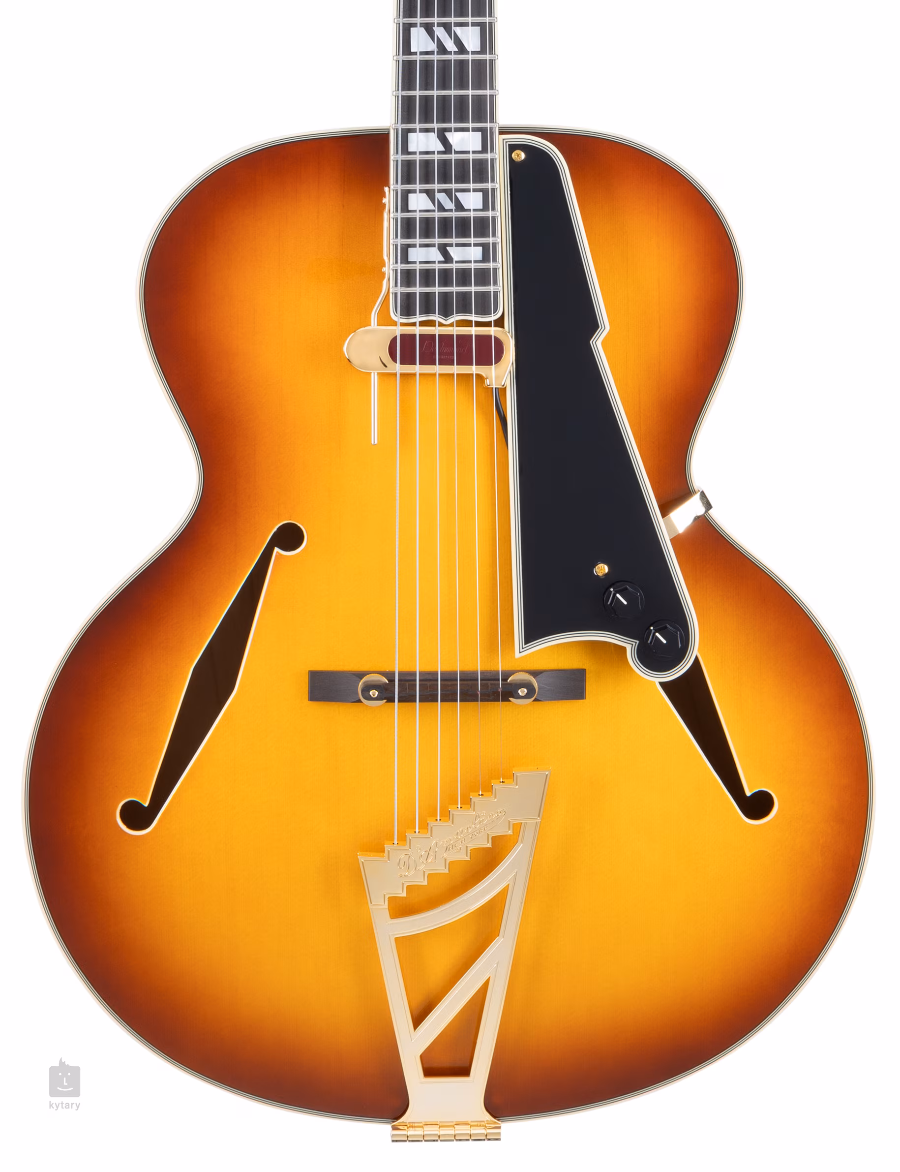 Floating single-coil snímač DeArmond Rhythm Chief, často použitý u kytar D'Angelico z pozdních 30. a 40. let, amplifikuje vřelý “dřevěný” akustický zvuk nástroje, aniž by měnil jeho charakter. Nastavení je možné upravit pomocí ovladačů hlasitosti a tónové clony.