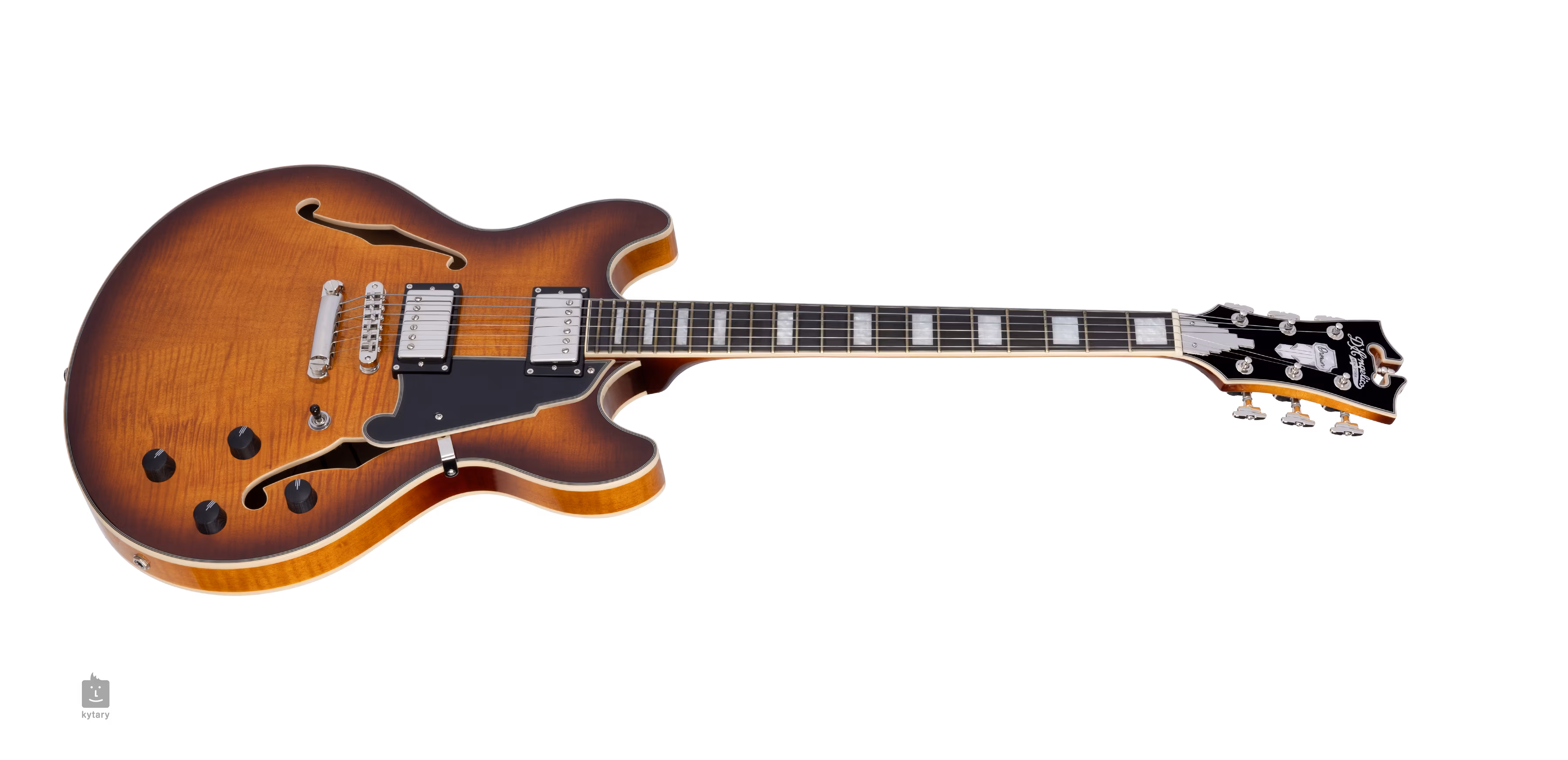 Tělo kytary vyvažuje pro tuto firmu typická hlavice v Art Deco designu ozdobená perleťovým firemním logem a inlayem (Mother-of-Pearl). Stabilní ladění a dobrý sustain zaručuje uchycení strun přes nultý pražec z materiálu Graphtech NuBone XL v mechanikách Grover 109 Super Rotomatic a přes kobylku TOM ve struníku. Stylový vzhled kytary podtrhuje lemovka lemovka těla, hmatníku a hlavy a pětivrstvý pickguard Scalini.