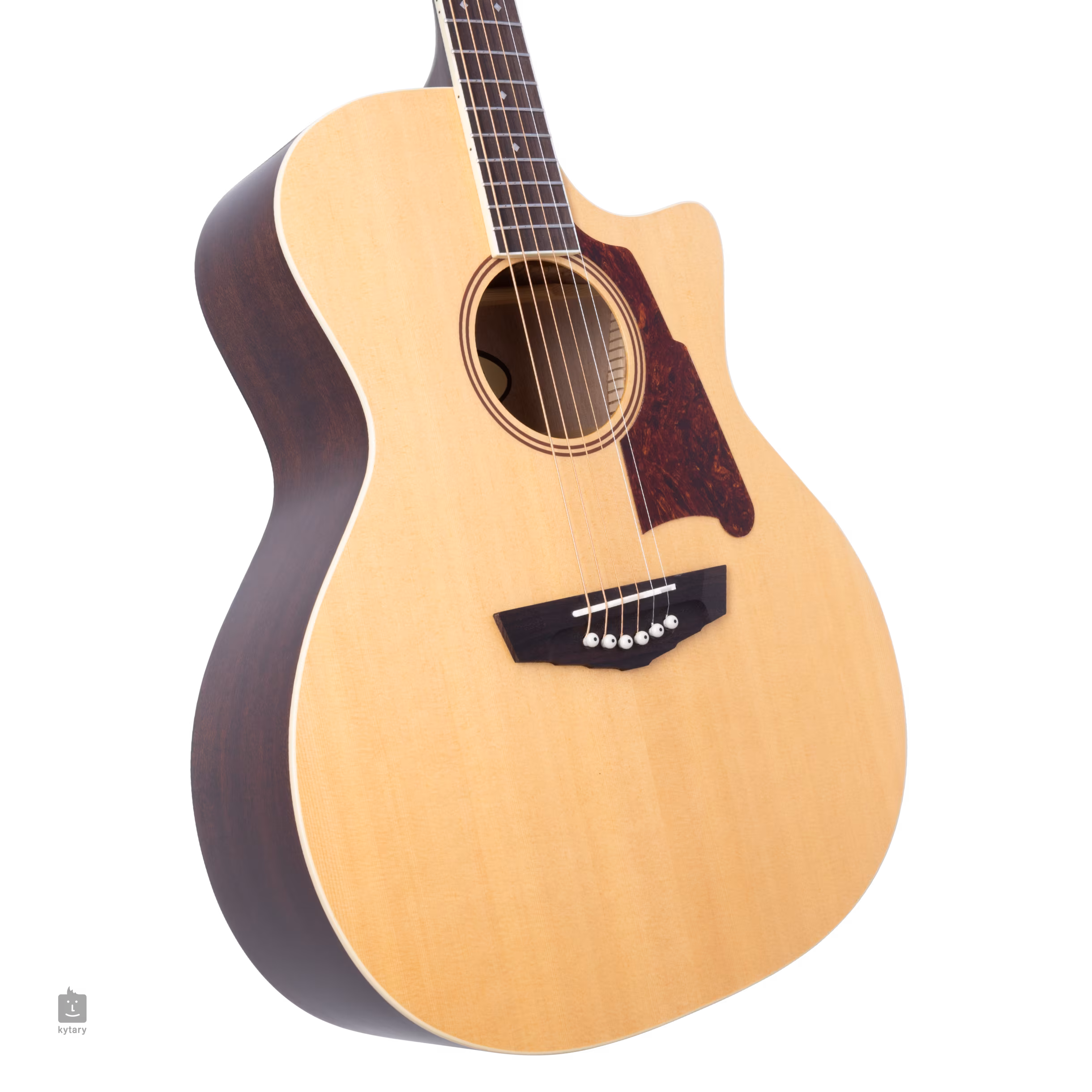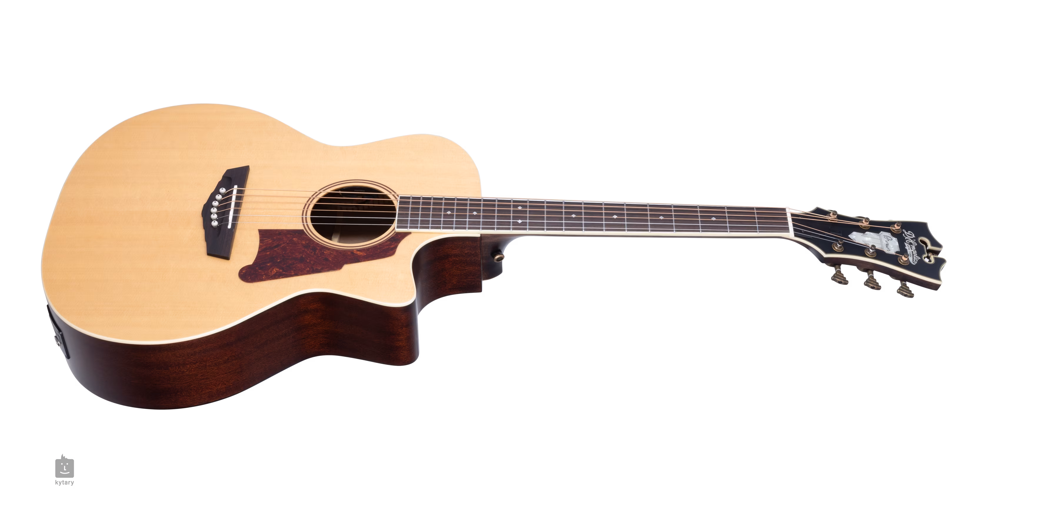 Přední deska kytary PREMIER GRAMERCY Grand Auditorium CE Natural je zhotovena z masivu smrku, zadní deska a luby jsou vyrobeny z laminovaného sapele. Dobré akustické vlastnosti kytary podporuje snížené X žebrování (Scalloped X). K mahagonovému krku s užším „C“ profilem je přilepen palisandrový hmatník osazený dvaceti pražci velikosti Medium Jumbo. Orientaci na hmatníku usnadňují polohové značky z imitace perleti ve tvaru malých démantů.