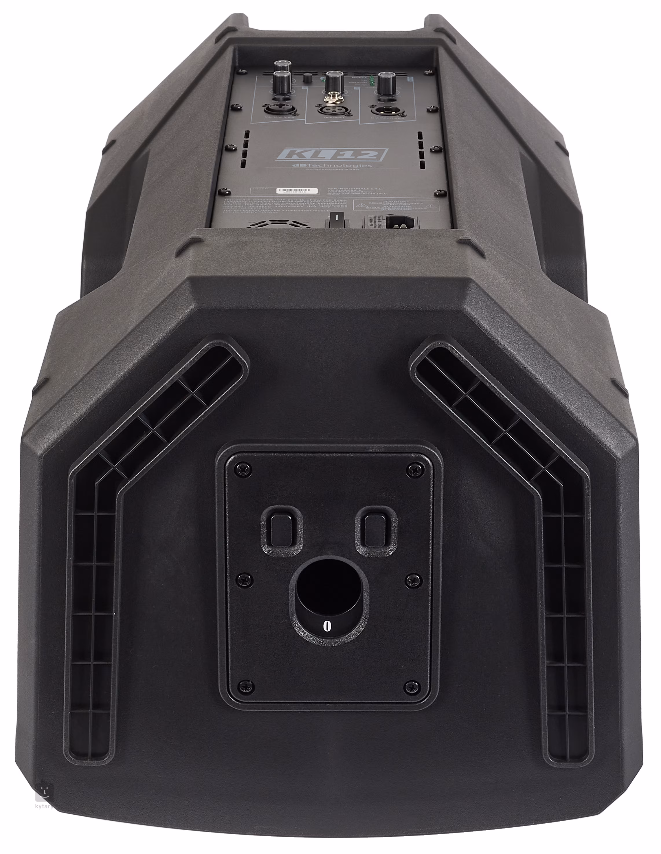 KL12 v sobě ukrývá 12“ basový a 1“ výškový reproduktor, které vám spolu s bi-amp zesilovačem třídy D pro LF a třídy AB pro HF zajistí maximální výkon až 800W. Zadní strana obsahuje tříkanálový mixpult s kombinovaným konektorem, XLR vstupem pro mikrofon a linkovým vstupem pro nástroj. Třetí kanál potom využijete pro připojení zařízení s Bluetooth technologií. Každý kanál obsahuje separátní ovladač hlasitosti a pro připojení do dalšího PA se zde nachází XLR výstup s dvoupolohovým přepínačem Line/Mix. K dispozici budete mít také DSP jednotku se čtyřmi přednastavenými presety pro co nejflexibilnější využití. KL12 můžete usadit na reproduktorový stojan, nebo využít zkoseného tvaru pro pódiový monitor. Tři integrovaná robustní madla vám potom zajistí pohodlný transport mezi produkcemi. Součástí balení je nylonový přepravní obal.