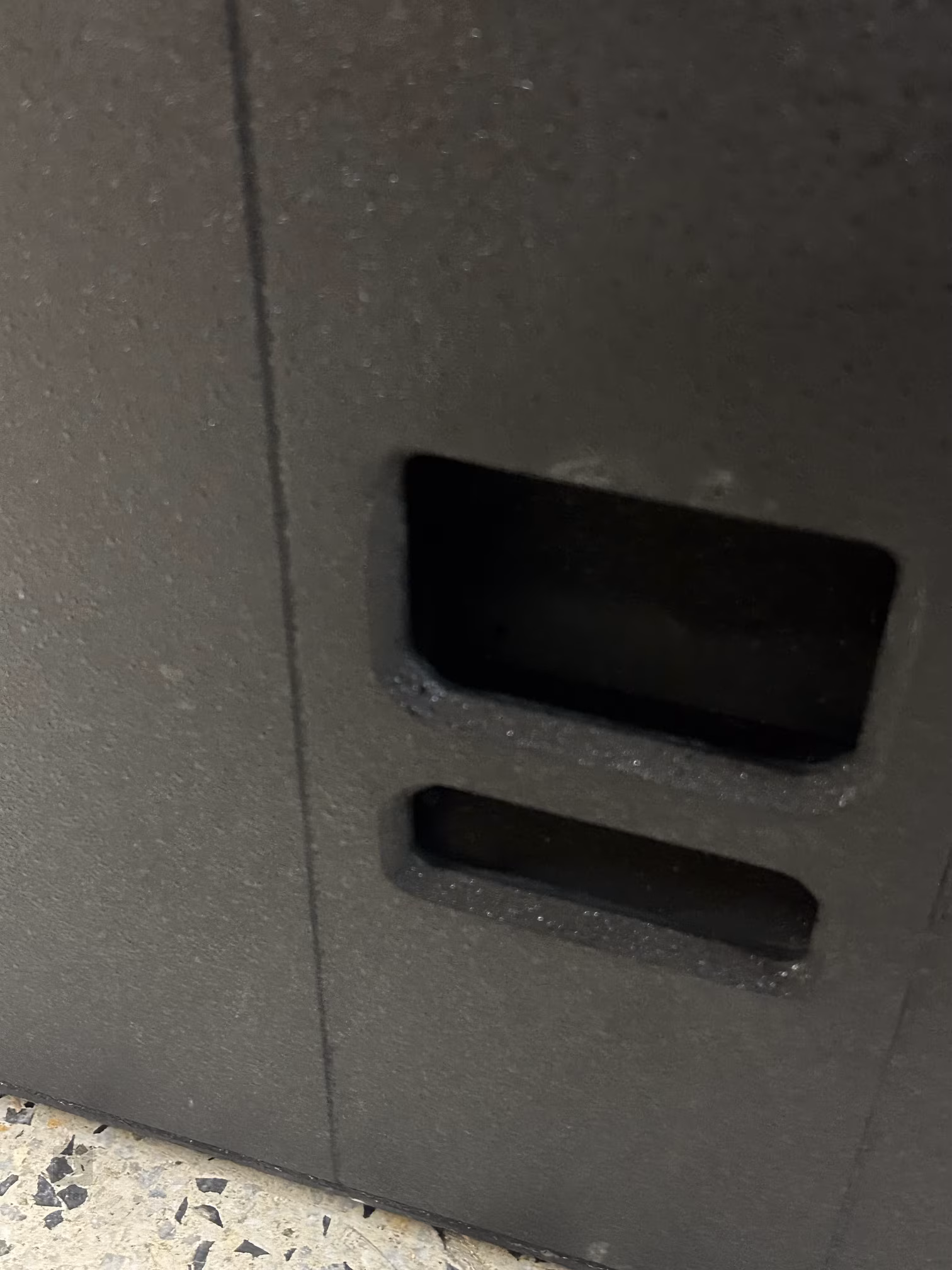 Dřevěná skříň je opatřena zapuštěnými madly a úchytem M20 na vrchní straně.