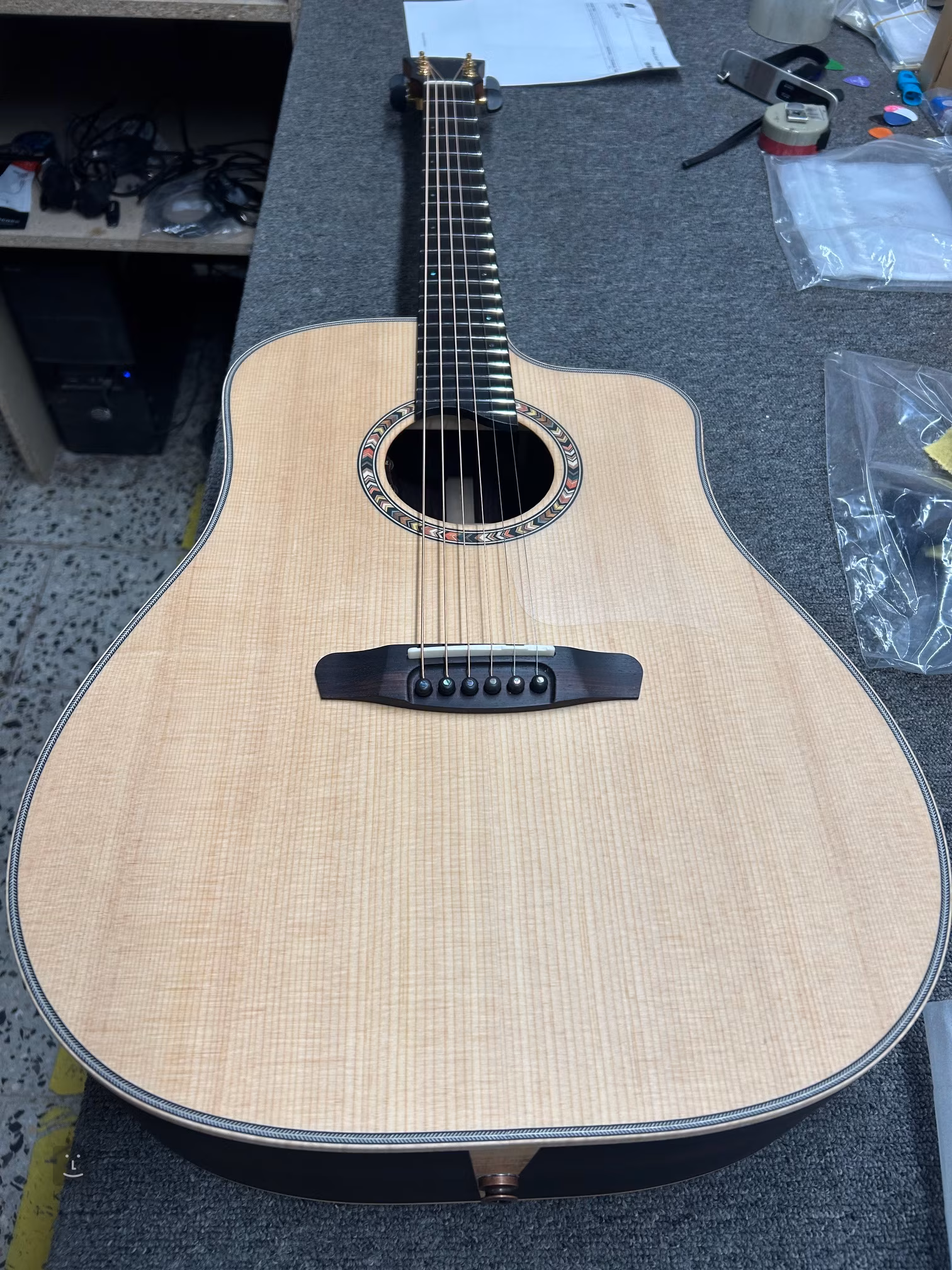 Přední deska kytary je vyrobena z masivu smrku Sitka, zadní deska a luby jsou zhotoveny z masivu indického palisandru. Akustické kvality nástroje umocňuje individuální ladění přední desky a povrchová úprava Open Pore.
