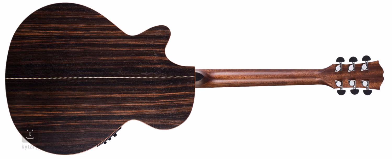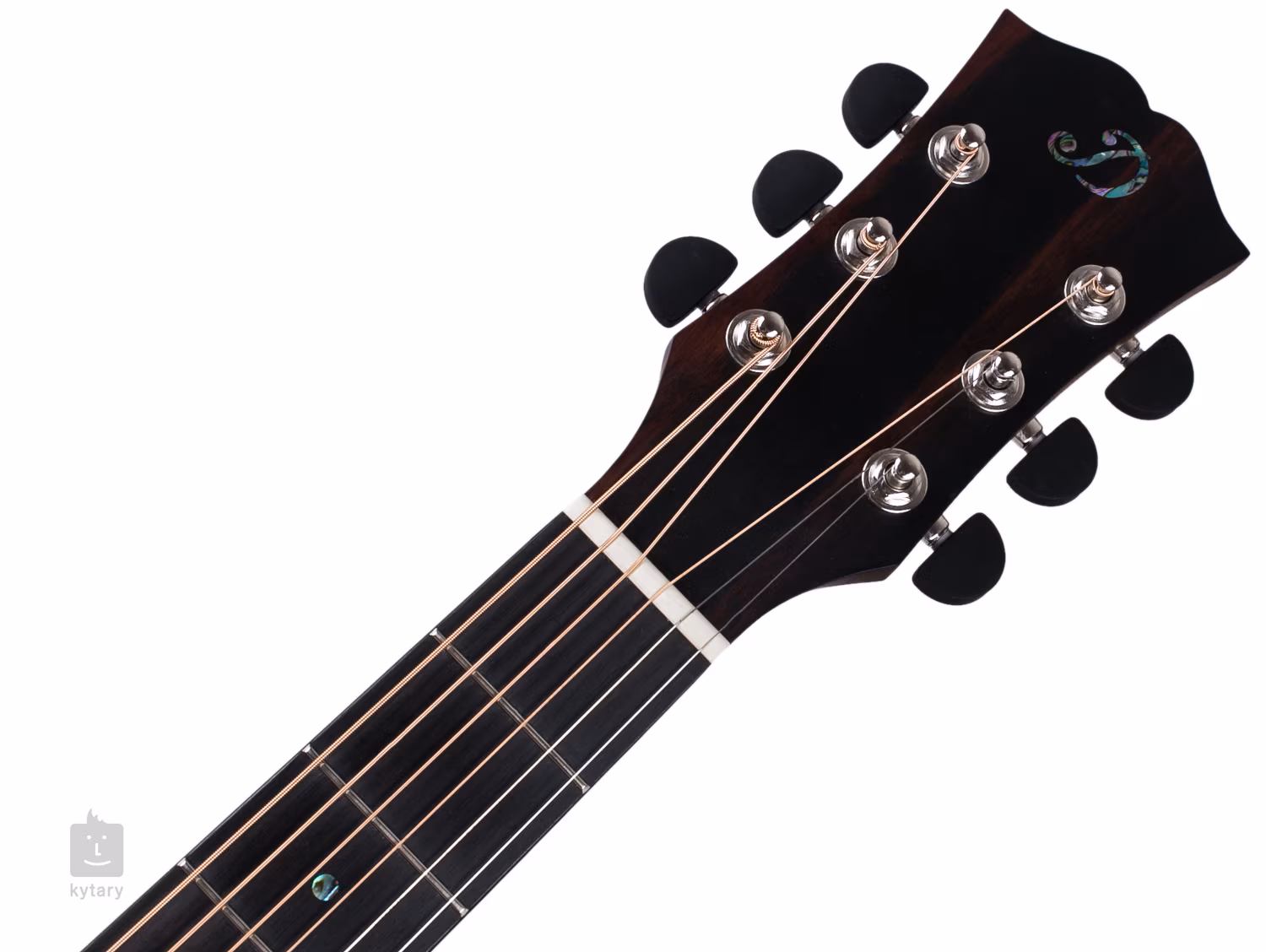 Ke krku ze dřeva nato, pro podobné vlastnosti označovaného jako “eastern mahogany”, je přilepen hmatník z ebonizovaného hardwoodu. Stabilitu ladění zaručuje uchycení strun přes nultý pražec z kosti v mechanikách značky Grover a kobylce z hardwoodu. Pěkné zpracování podtrhují detaily v podobě mahagonové obvodové lemovky těla, výložky topu a zadní desky ve vzoru rybí kosti (Herringbone), zdobné rozety, perleťového firemního loga na hlavici (Abalone) a perleťových teček na hmatníku.