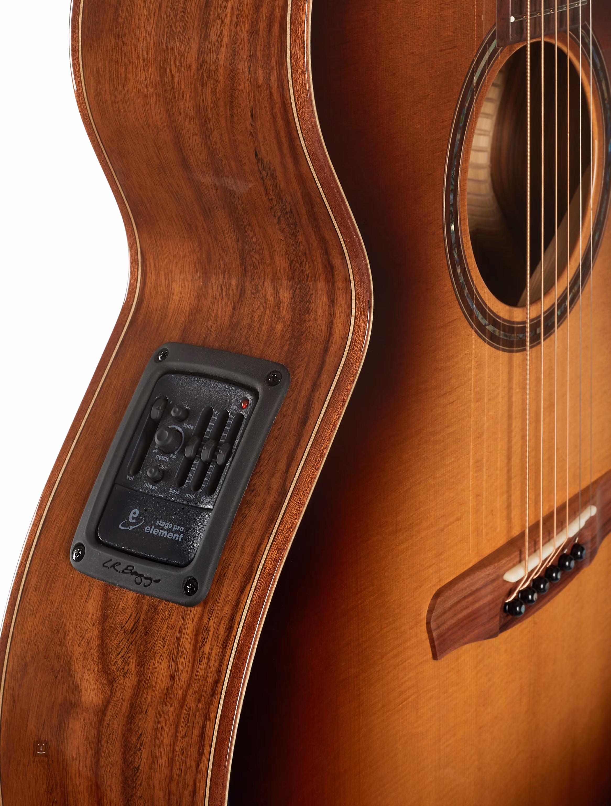 Elektronika L. R. Baggs StagePro Element představuje ideální řešení ozvučení akustických kytar. Preamp nabízí ovladač hlasitosti, zabudovanou ladičku, třípásmový ekvalizér a ovladače Notch Filter a Phase, kterými zkrotíte veškeré rušivé prvky a akustický zvuk nástroje tak vyzní v plné parádě.