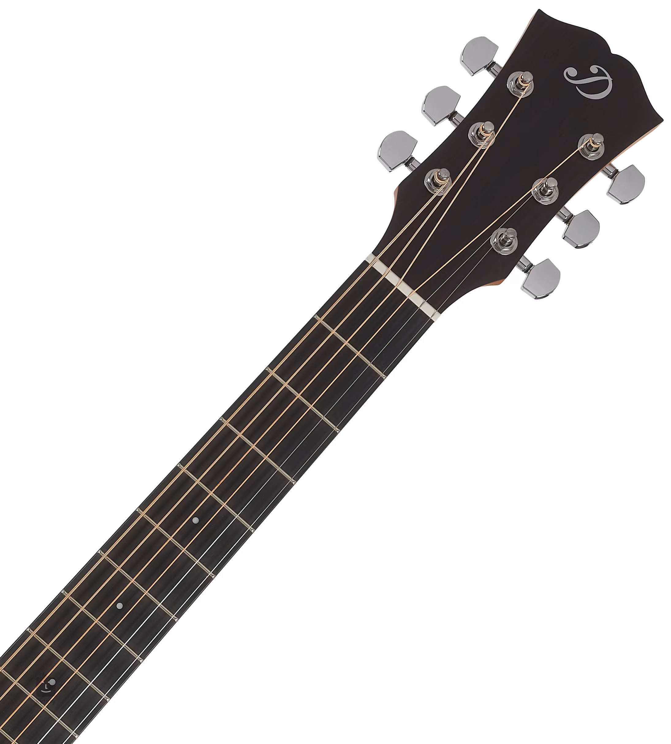 Ke krku ze dřeva nato, pro podobné vlastnosti označovaného jako “eastern mahogany”, je přilepen hmatník z ebonizovaného hardwoodu. Stabilitu ladění zaručuje uchycení strun přes nultý pražec z imitace kosti v chromovaných mechanikách a kobylce z hardwoodu. Pěkné zpracování podtrhují detaily v podobě mahagonové obvodové lemovky těla, výložky topu a zadní desky ve vzoru rybí kosti (Herringbone), zdobné rozety a polohových teček na hmatníku.