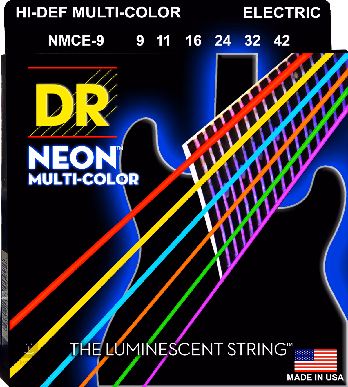 Neonově zbarvené struny Hi-Def Neon Multi-Color od společnosti DR jsou výjimečné nejen svým barevným provedením, které přímo bije do očí, obzvláště při vystavení UV světlu, ale také hlasitým, agresivním zvukem, jenž jejich atraktivní mix barev nádherně doplňuje. Vinutí z postříbřené oceli na šestihranném jádru jim poskytuje průrazný, intenzivní tón vhodný pro žánry, kde je zapotřebí dát kytaře řádně vyniknout. Všechny struny v sadě jsou navíc potaženy extra tvrdým potahem K3, který eliminuje nežádoucí alikvóty a tím jim dodává jasnou artikulaci a čistotu, přičemž ještě zvyšuje jejich odolnost. Struny a veškeré materiály jsou vyrobeny v USA.