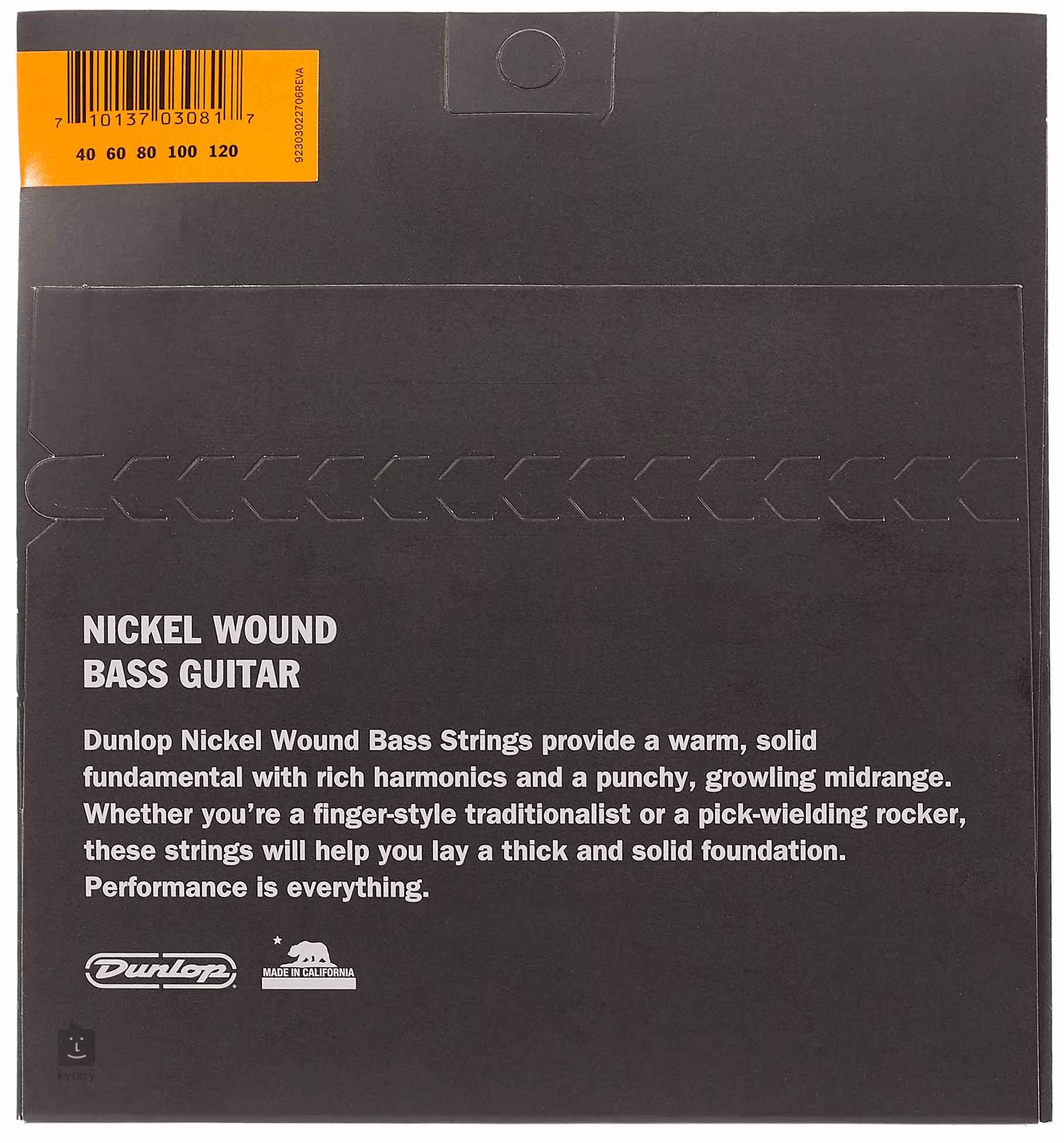 Struny pro elektrické baskytary značky Dunlop z řady Standard Nickel Wound nabízí harmonickou kombinaci vřelých, robustních basů a jasných, pronikavých středů, které prorazí v každém mixu. Jejich ocelové jádro je vinuté poniklovanou ocelí, která zjemňuje ostrý, kovový zvuk čisté oceli a poskytuje frekvenčně vyvážený tón vhodný pro většinu žánrů. Ať už hrajete blues, jazz, rock, punk nebo jiné alternativní styly, struny Dunlop vás za každou cenu podrží.