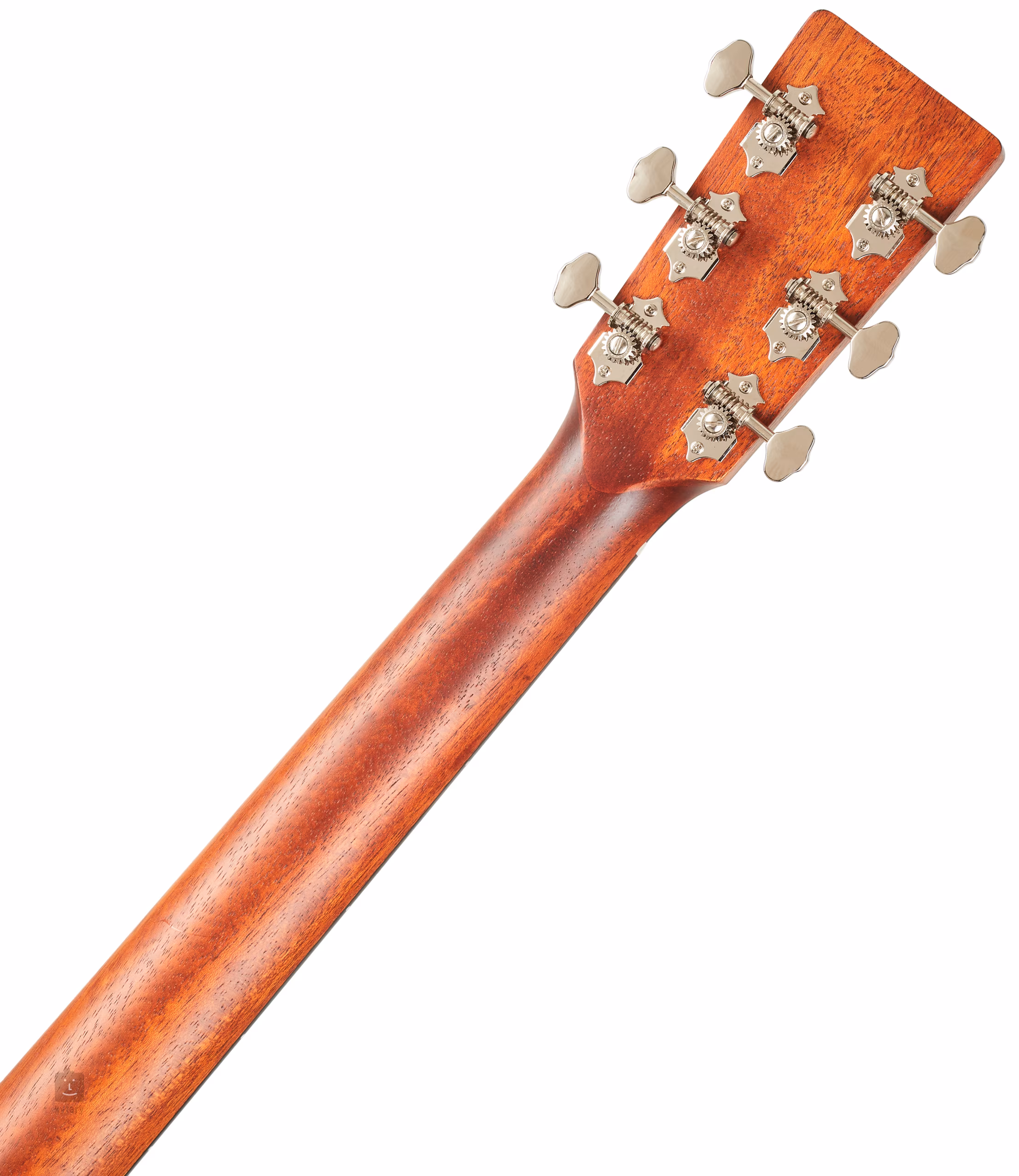 Struny jsou přes nultý pražec z kosti uchyceny v niklových otevřených ladících mechanikách (Open-Gear PingWell V93N 3+3) a ebenové kobylce. Pěkné zpracování podtrhuje oboustranná obvodová lemovka těla z imitace želvoviny, perleťová rozeta, pickguard z imitace želvoviny a firemní logo na hlavici.