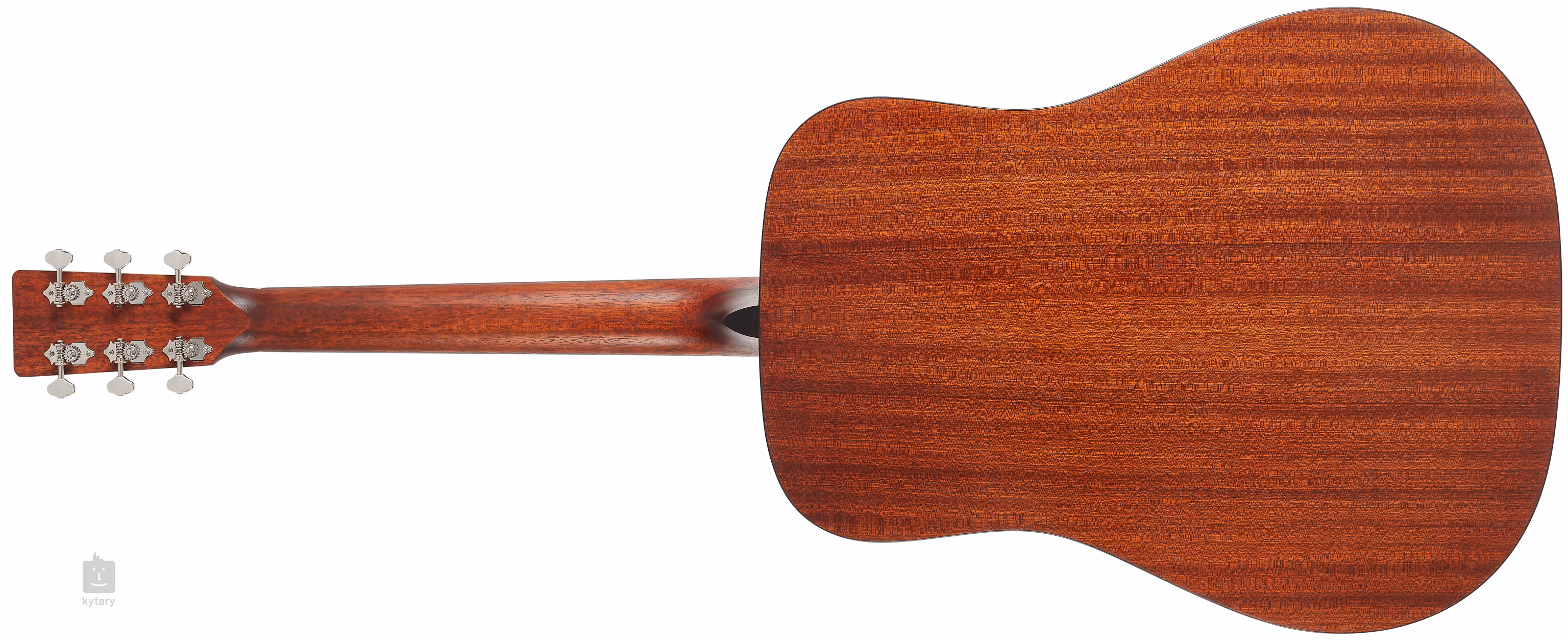 Struny jsou přes nultý pražec z kosti uchyceny v niklových otevřených ladících mechanikách (Open-Gear PingWell V93N 3+3) a ebenové kobylce. Pěkné zpracování podtrhuje oboustranná obvodová lemovka těla z imitace želvoviny, perleťová rozeta, pickguard z imitace želvoviny a firemní logo na hlavici.