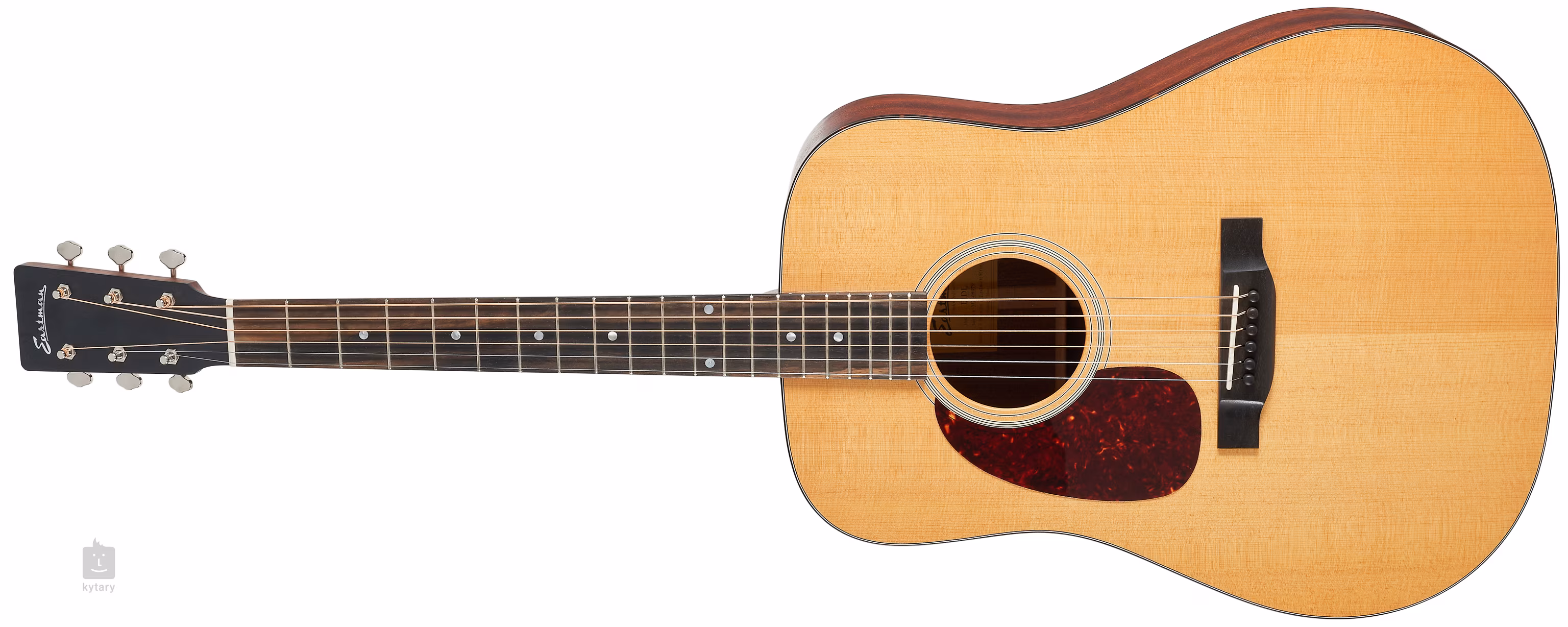Eastman E1D je celomasivní akustická kytara s velkým rezonantním tělem typu Dreadnought. Přední deska kytary je zhotovena ze smrku Sitka, zadní deska a luby jsou vyrobeny ze sapele. K mahagonovému krku s příjemným “C” profilem je přilepen ebenový hmatník osazený dvaceti pražci. Rezonanci topu podporuje ručně snížené žebrování (Scalloped X), orientaci na hmatníku usnadňují perleťové poziční tečky.