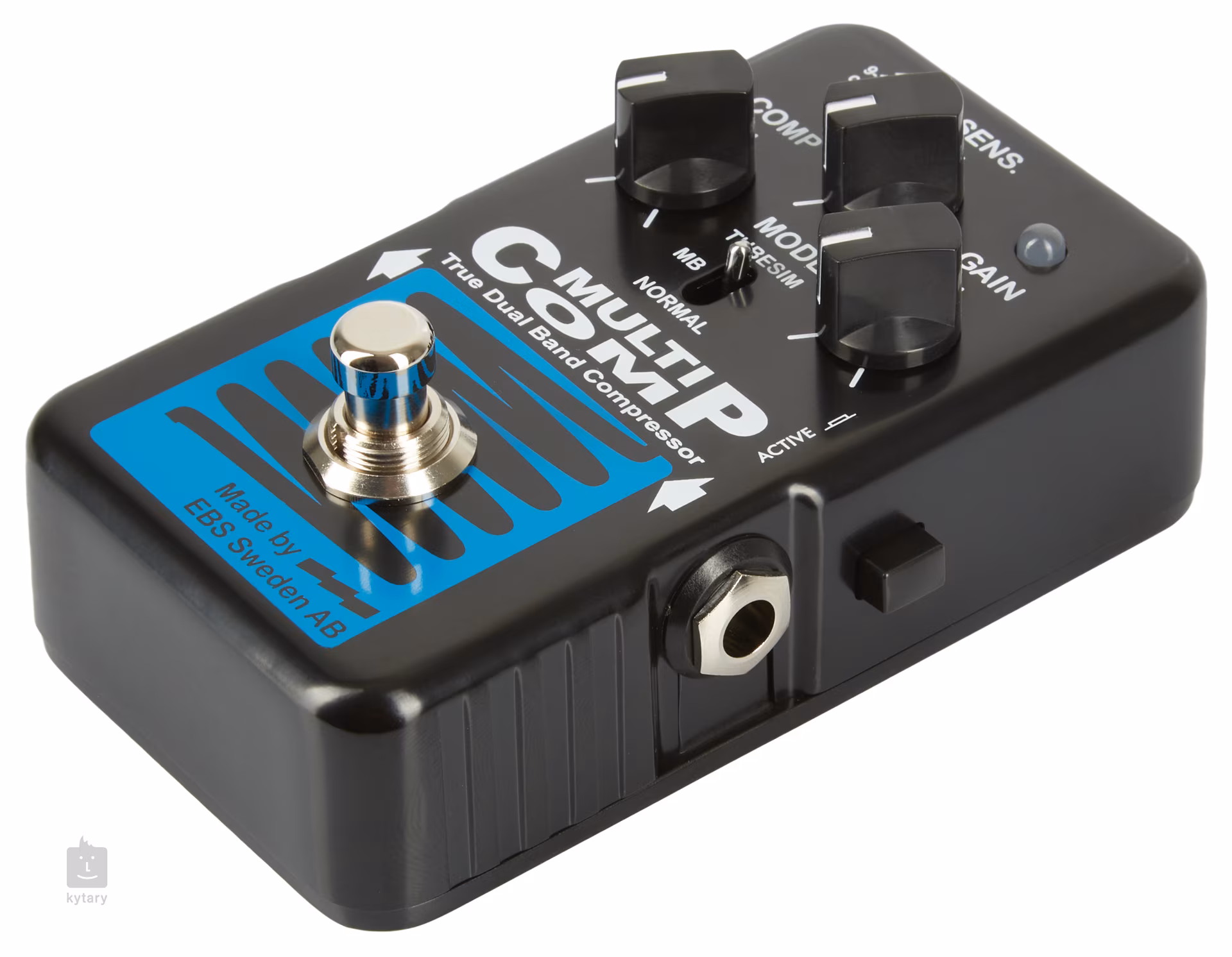 Pedál MultiComp Blue Label je vysoce účinný analogový kompresor/limiter s volbou mezi třemi různými módy kompresí. Pomáhá vyrovnávat dynamiku, frekvenční a dynamické špičky, hlavně však umí zvuk „nakopnout“. Tří polohový přepínač nabízí módy Tubesim, Multiband a Normal. Mód Tubesim aktivuje obvod simulující vlastnosti lampy, zvuk je obohacen o vyšší harmonické kmitočty, dostává větší brilanci. Je velmi vhodný, když si přejete přidat k vašemu zvuku vřelost a extra teplo. Mód MultiBand umožňuje využít kompresoru duálně, komprimuje frekvence basů a výšek nezávisle na sobě. V tomto módu můžete dosáhnout maximální čisté komprese bez průvodních jevů. V kombinaci s potenciometrem pro volbu kompresního poměru lze získat velmi zajímavý, dravý zvuk. Nastavení Normal je standardní druh komprimace.