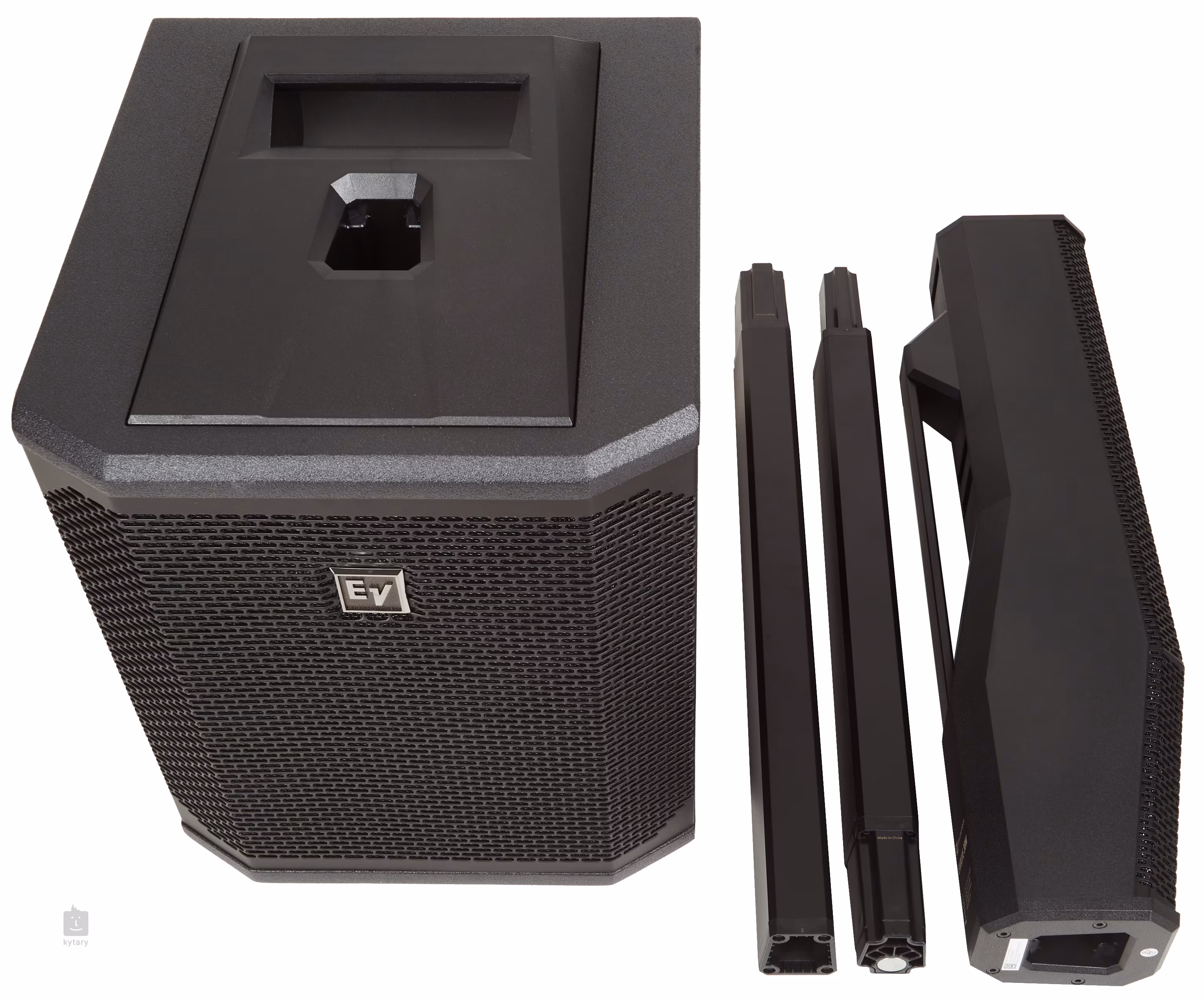 Měniče Sloupovou soustavu s plným frekvenčním rozsahem tvoří šest 2,8" neodymových měničů, které poskytují ultraširoké pokrytí 120° prostřednictvím patentovaných vlnovodů. Asymetrické vertikální pokrytí v rozsahu 40° zajišťuje směrování výstupu zvuku k sedícím i stojícím posluchačům. Skříň je vyrobena z odolného kompozitního materiálu a obsahuje ergonomickou hliníkovou rukojeť. 10" subwoofer je umístěn v 15 mm dřevěné skříni s vysoce účinnou konstrukcí s laminárním prouděním, která zajišťuje akustický výkon a potřebnou tuhost. Soustava a subwoofer jsou propojeny dvoudílnou symetrickou distanční tyčí z hliníku s vnitřním kabelovým vedením a magnetickou západkou. Pokročilý zesilovač třídy D poskytuje výkon až 1000 W rovnoměrně rozdělený mezi subwoofer a sloupové měniče. Reproduktory jsou chráněny práškově lakovanou mřížkou z masivní oceli. Kombinace těchto prvků vytváří skutečně působivý poměr výkonu a velikosti v elegantním provedení, které vypadá stejně dobře jako zní.