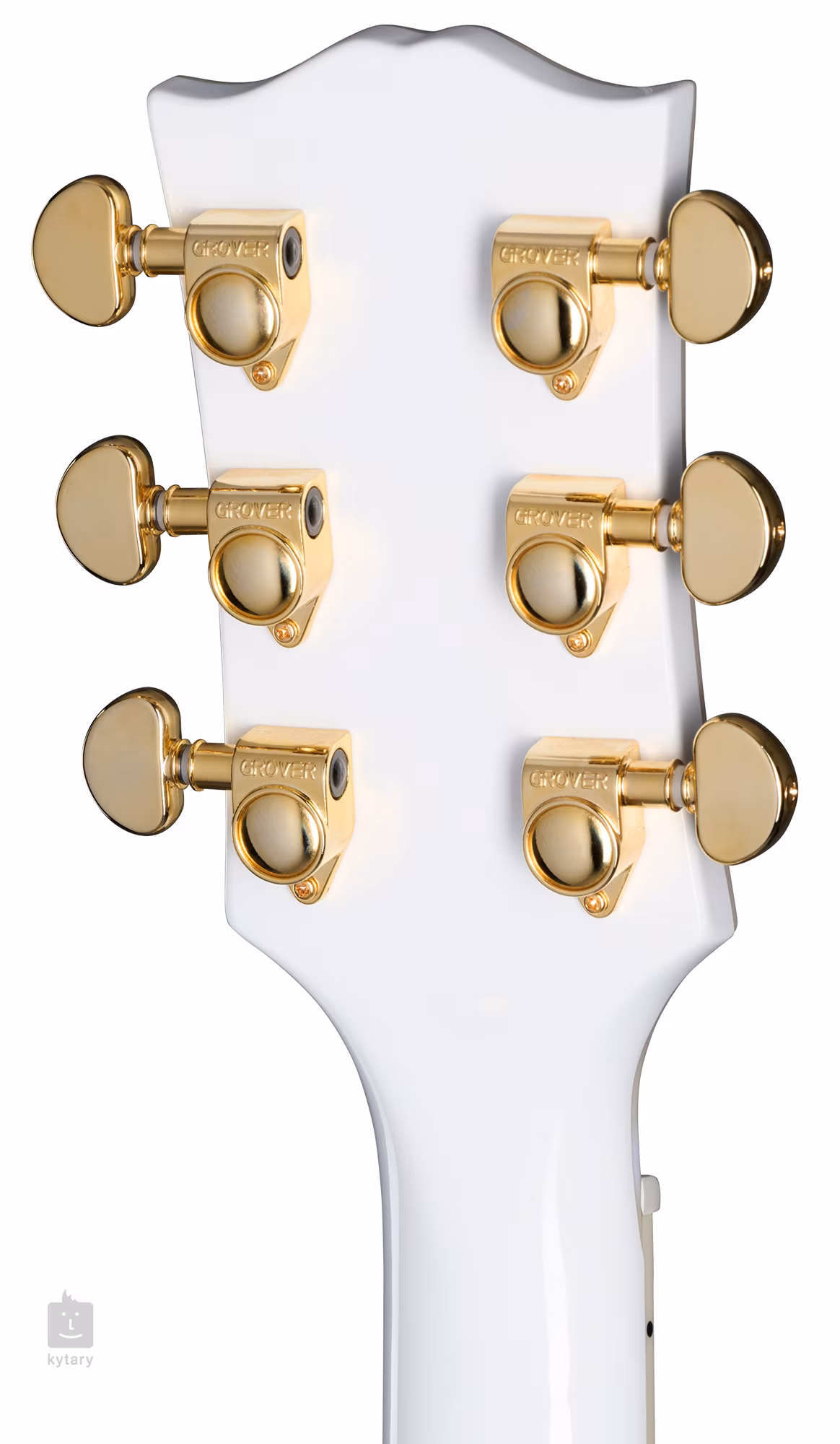 Stabilní ladění zaručuje uchycení strun v mechanikách Grover Rotomatic s převodovým poměrem 18:1 a přes kobylku LockTone TOM ve struníku. Stylové zpracování podtrhují perleťové firemní logo a split diamond inlay na hlavici (Mother-of-Pearl), oboustranná obvodová lemovka těla, černý pětivrstvý pickguard a hardware ve zlatém provedení.