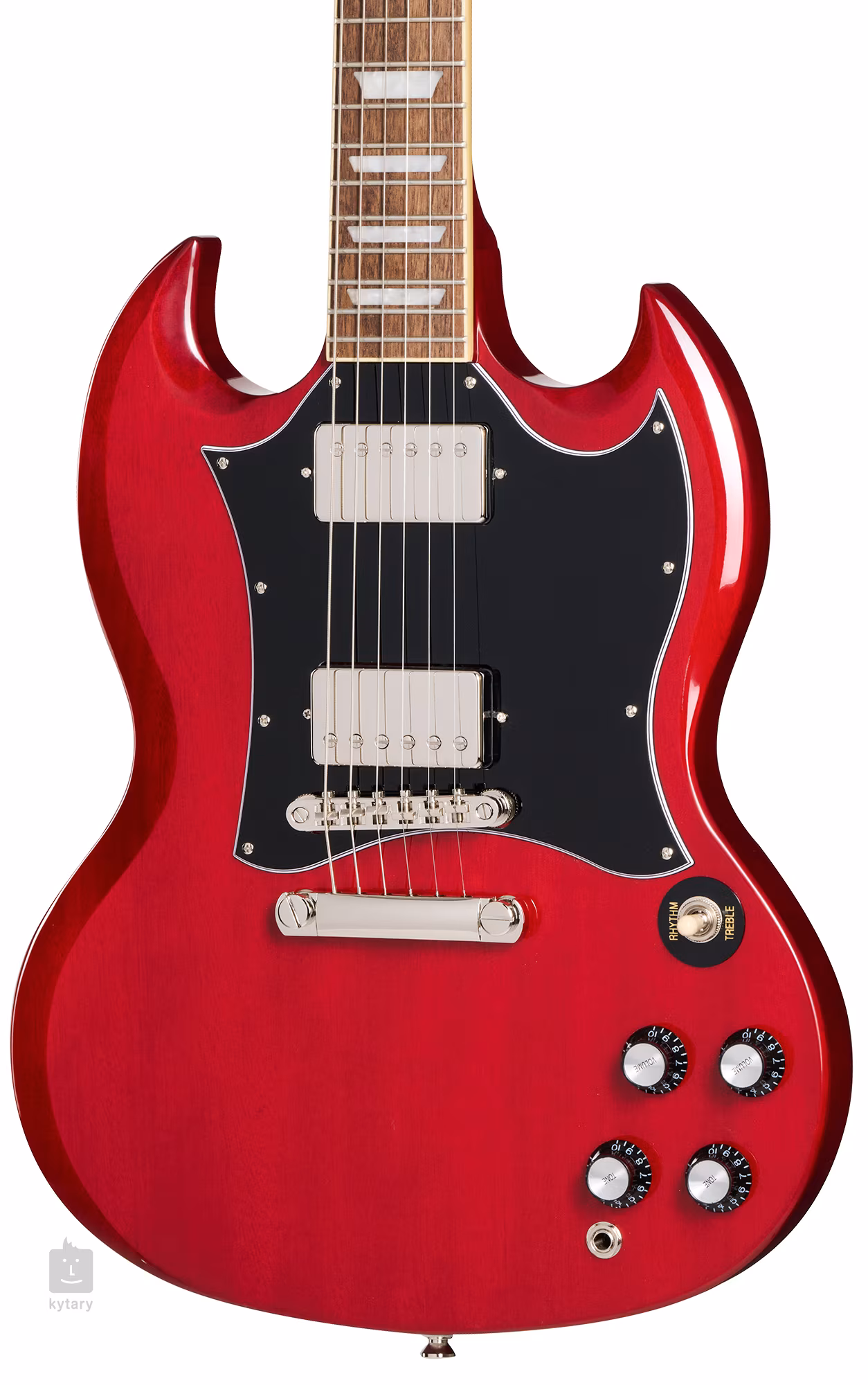 Tělo elektrické kytary SG Standard Cherry je zhotoveno z mahagonu. K mahagonovému krku s pohodlným a rychlým SlimTaper “C” profilem je přilepen hmatník z fíkovníku osazený dvaadvaceti pražci velikosti Medium Jumbo. Orientaci na hmatníku usnadňují polohové bloky z imitace perleti.