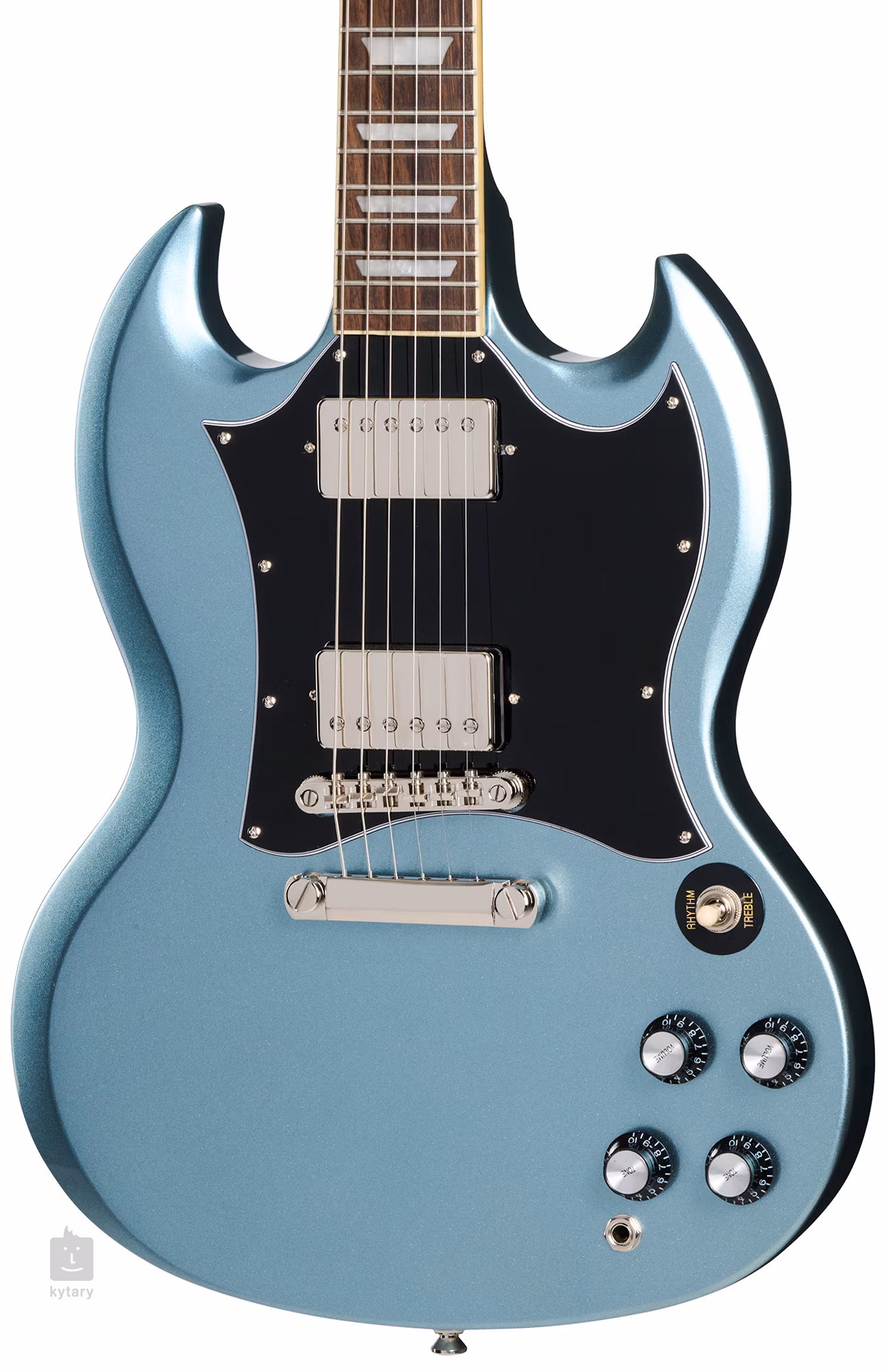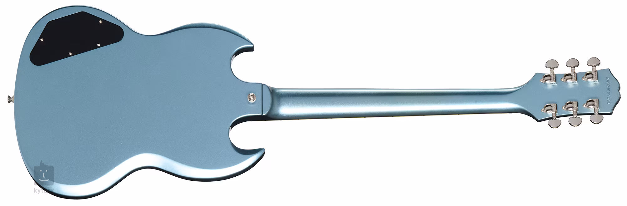 Elektrické kytary Epiphone představují finančně dostupnější alternativu originálů s logem Gibson. A to platí i v případě modelové řady SG Standard vycházející z designu ceněných „esgéček“ z konce 60. let minulého století. Tělo elektrické kytary SG Standard Pelham Blue je zhotoveno z mahagonu. K mahagonovému krku s pohodlným a rychlým SlimTaper “C” profilem je přilepen hmatník z fíkovníku osazený dvaadvaceti pražci velikosti Medium Jumbo. Orientaci na hmatníku usnadňují polohové bloky z imitace perleti. Dva tovární humbuckery ProBucker, tj. krkový ProBucker 2 a kobylkový ProBucker 3 s o něco vyšším výstupem, zdařile emulují zvuk PAF snímačů. Poskytují kytaře plný vřelý tón, který oceníte s čistým i rockově zkresleným zvukem. Charakter zvuku upravíte pomocí potenciometrů hlasitosti, tónové clony a třípolohového přepínače snímačů. Struny jsou uchyceny v kvalitních ladicích mechanikách Grover Rotomatic a přes nastavitelnou kobylku LockTone TOM ve struníku. Stylový design podtrhuje černý “Batwing" style pickguard. Kytara je dodávána v obalu (premium gig bag).
