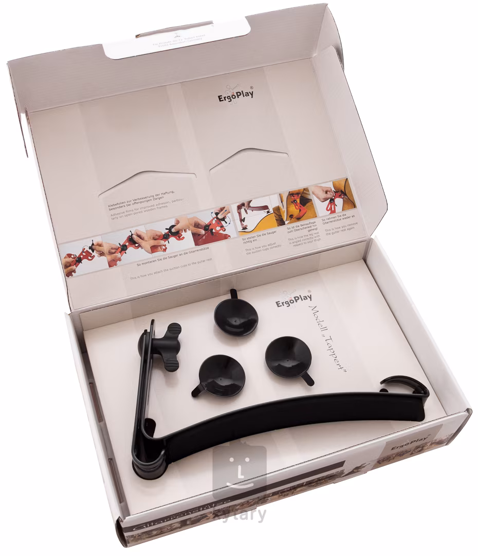 ErgoPlay je kytarová podpěra, která zajišťuje optimální držení nástroje, pomáhá správnému držení těla a snižuje únavu. Díky snadnému nastavení se přizpůsobí každému hráči. Pomůcka je vhodná pro děti, které ochrání před kulatými zády a rotací páteře, amatérské hráče, kterým usnadní hru i profesionální hráče, kterým při častém hraní poskytne oporu. Podpěru na kytaru snadno a neinvazivně připevníte pomocí přísavek.