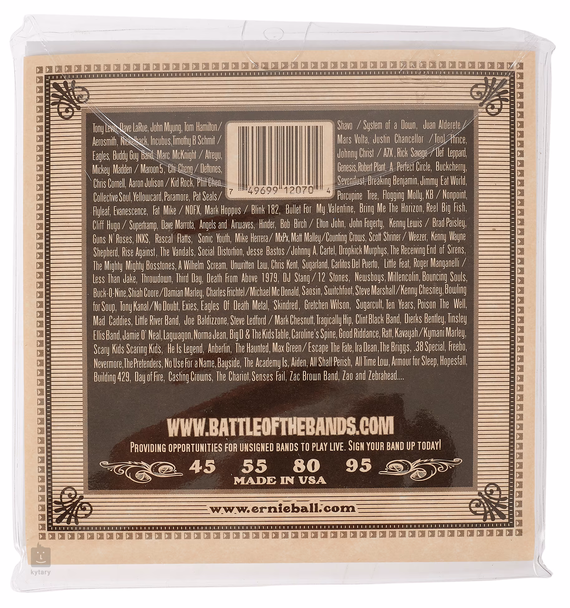Americká firma Ernie Ball patří již řadu desetiletí mezi přední výrobce kytarových a baskytarových strun. Pro jejich výrobu používá ty nejmodernější technologie a kvalitní materiály. Reaguje tak na současné požadavky a nároky i těch nejnáročnějších muzikantů. Jejich unikátní zvuk je zachycen na nahrávkách osobností jako Paul McCartney, Tony Levin, Mark Hoppus, Mike Herrera, Johnny Christ, Dave La Rue, John Myung nebo Juan Alderete. Struny jsou vyráběny ve Spojených státech amerických.