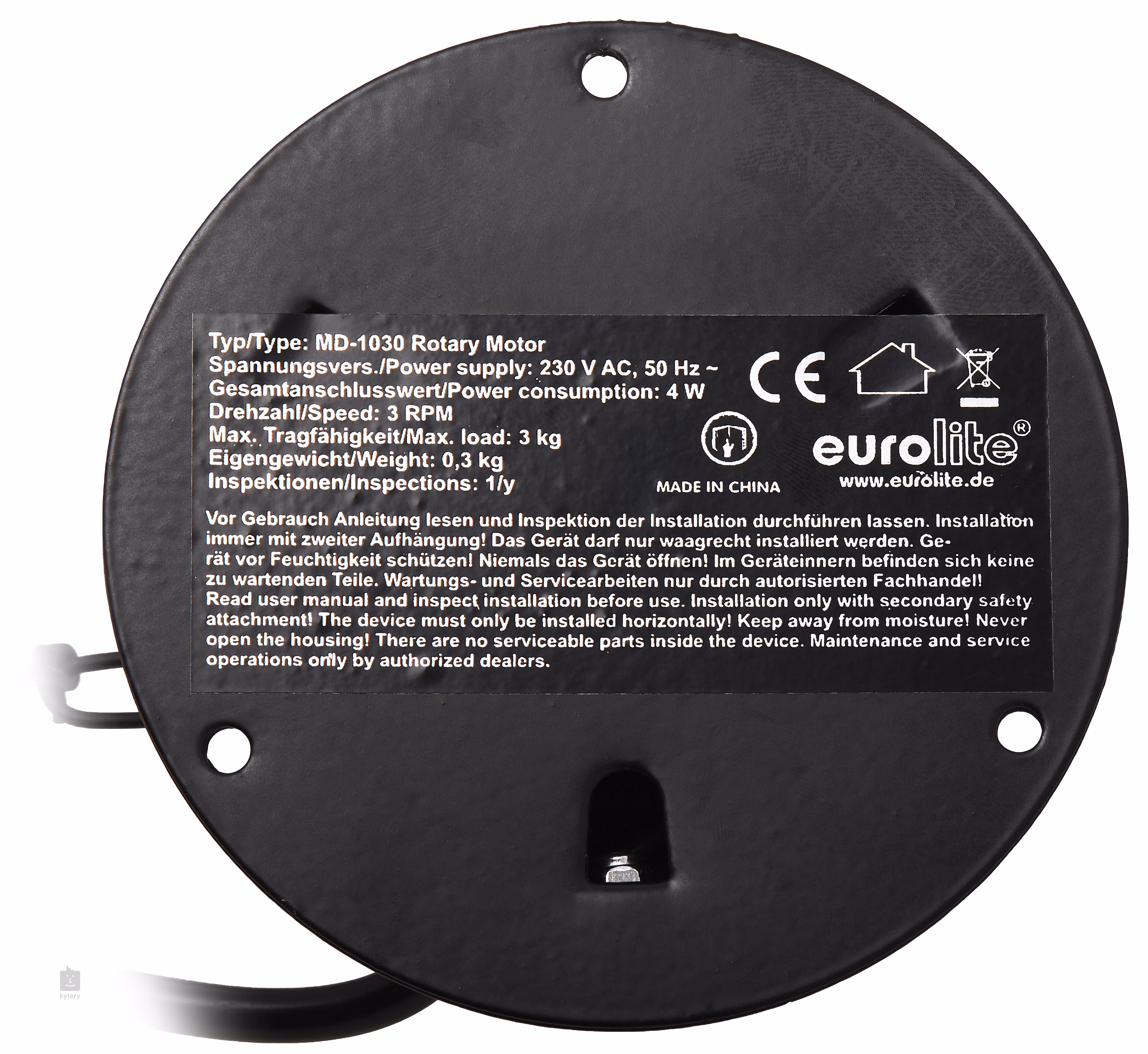 Eurolite MD-1030 je výkonný motorek pro zrcadlové koule, vhodný pro koule o maximální hmotnosti 3 kg, což odpovídá například modelům značky Eurolite o průměru 30 cm. Motorek zajišťuje stabilní rotaci 3 otáčky za minutu a vytváří magický, světélkující efekt. Tento model není vybaven zástrčkou do elektřiny.