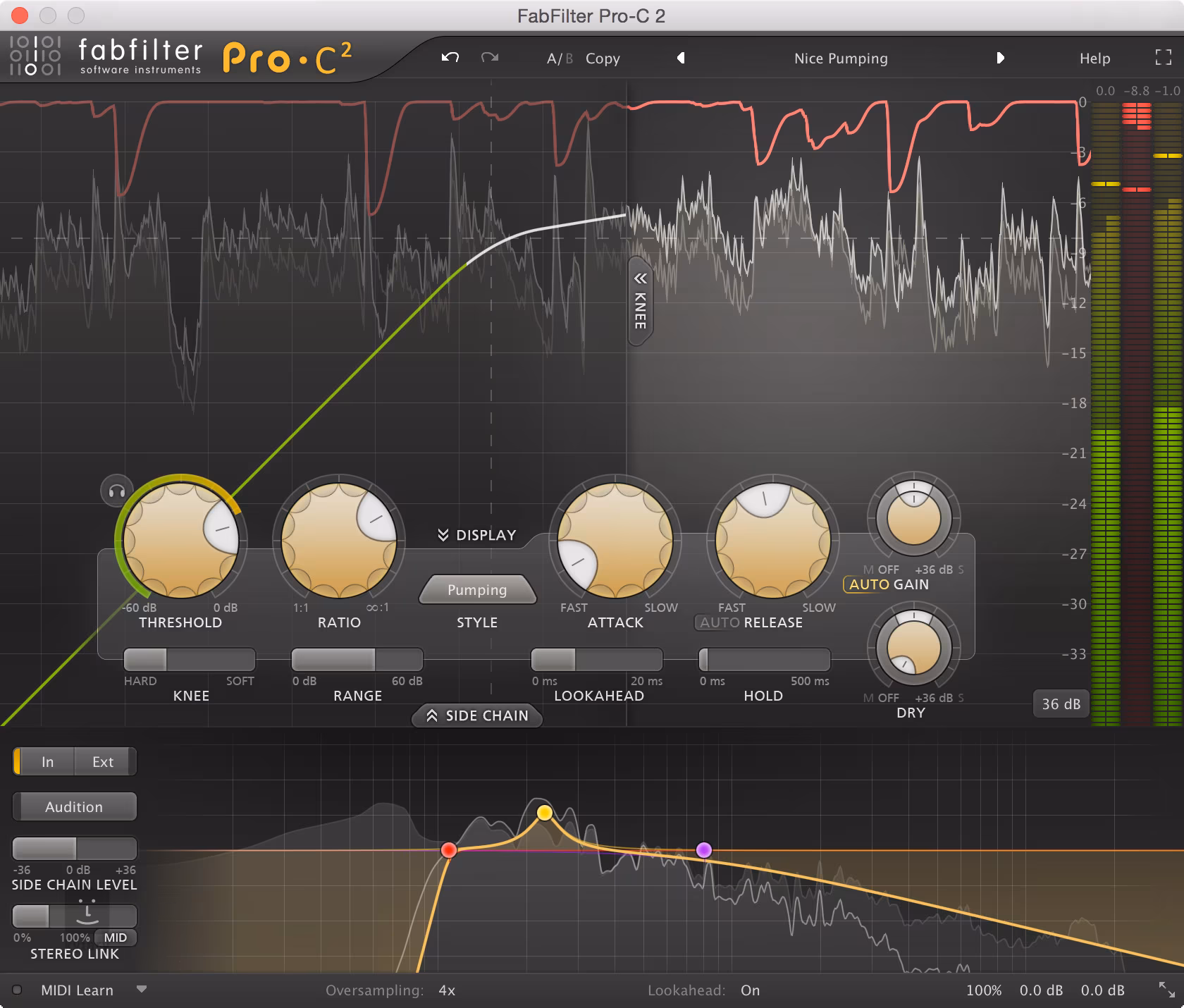 Vše, co potřebujete Pro-C 2 nabízí osm různých, na programu závislých kompresních stylů s nádherným zvukem a charakterem. Ale je toho víc! Kromě klasických ovládacích prvků kompresoru získáte také plynulý lookahead, až 4 násobné převzorkování, inteligentní auto-gain a auto-release, variable knee, hold, range, externí spouštění side-chainu, variabilní stereo propojení a M/S zpracování. To vše zabalené v krásném uživatelském rozhraní Retina.