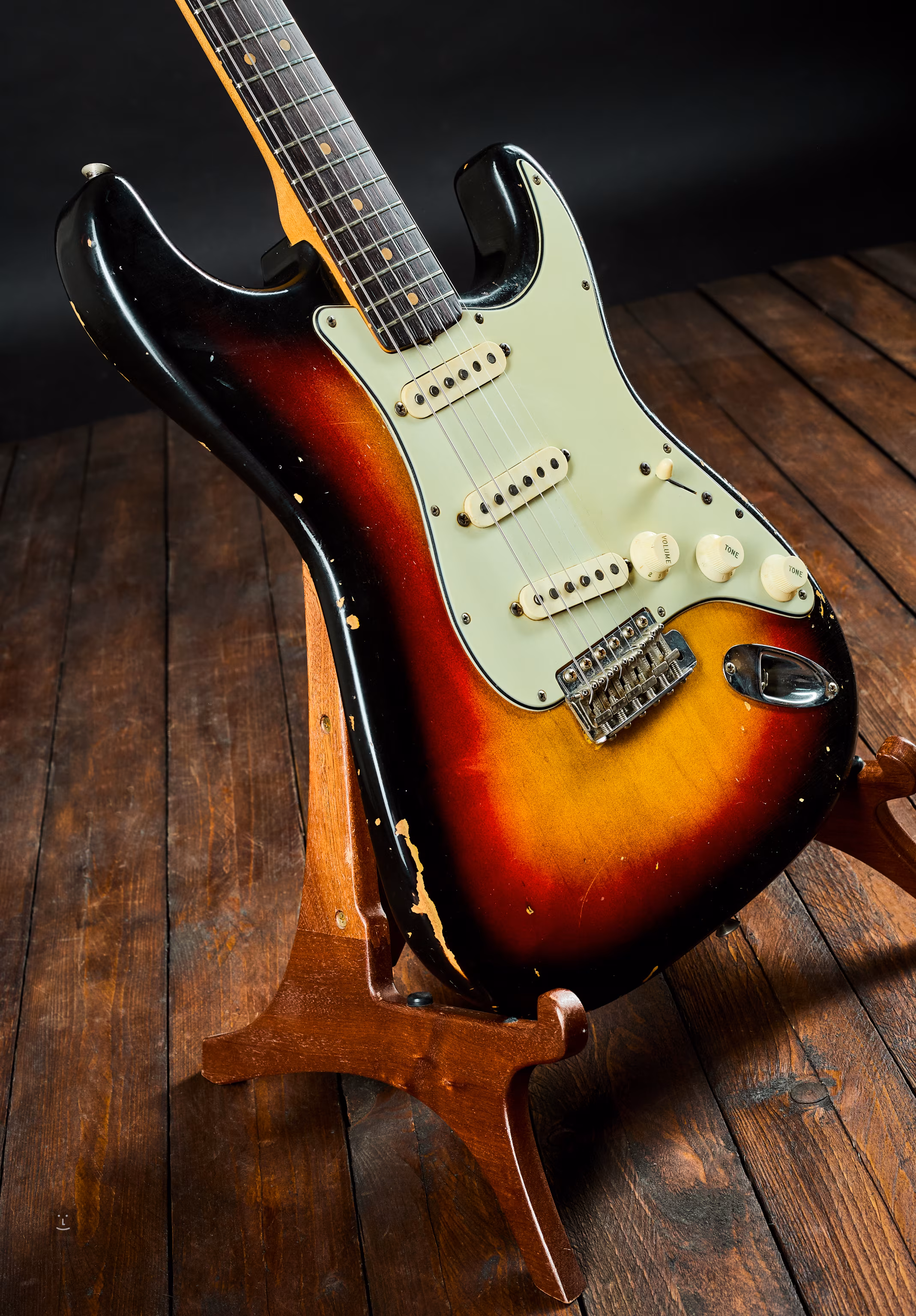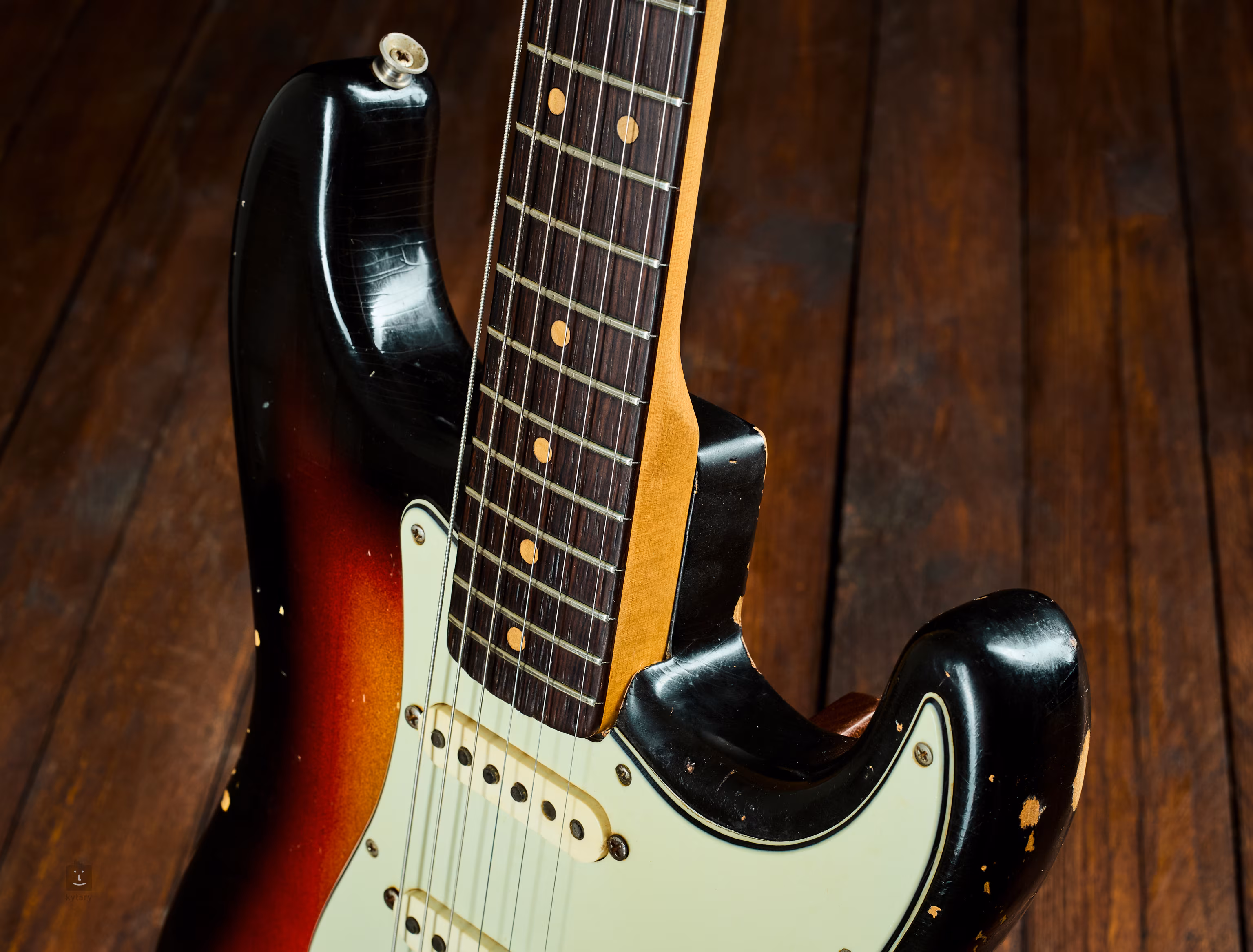 Sběratelská lahůdka té nejvyšší kvality. Originální stratocaster z roku 1963, tedy z 1. éry značky, kdy na výrobu dohlížel a továrnu v Kalifornském Fullertonu vlastnil samotný Leo Fender. Cenný artefakt z doby, kdy rock and roll čekal teprve ten největší rozmach.