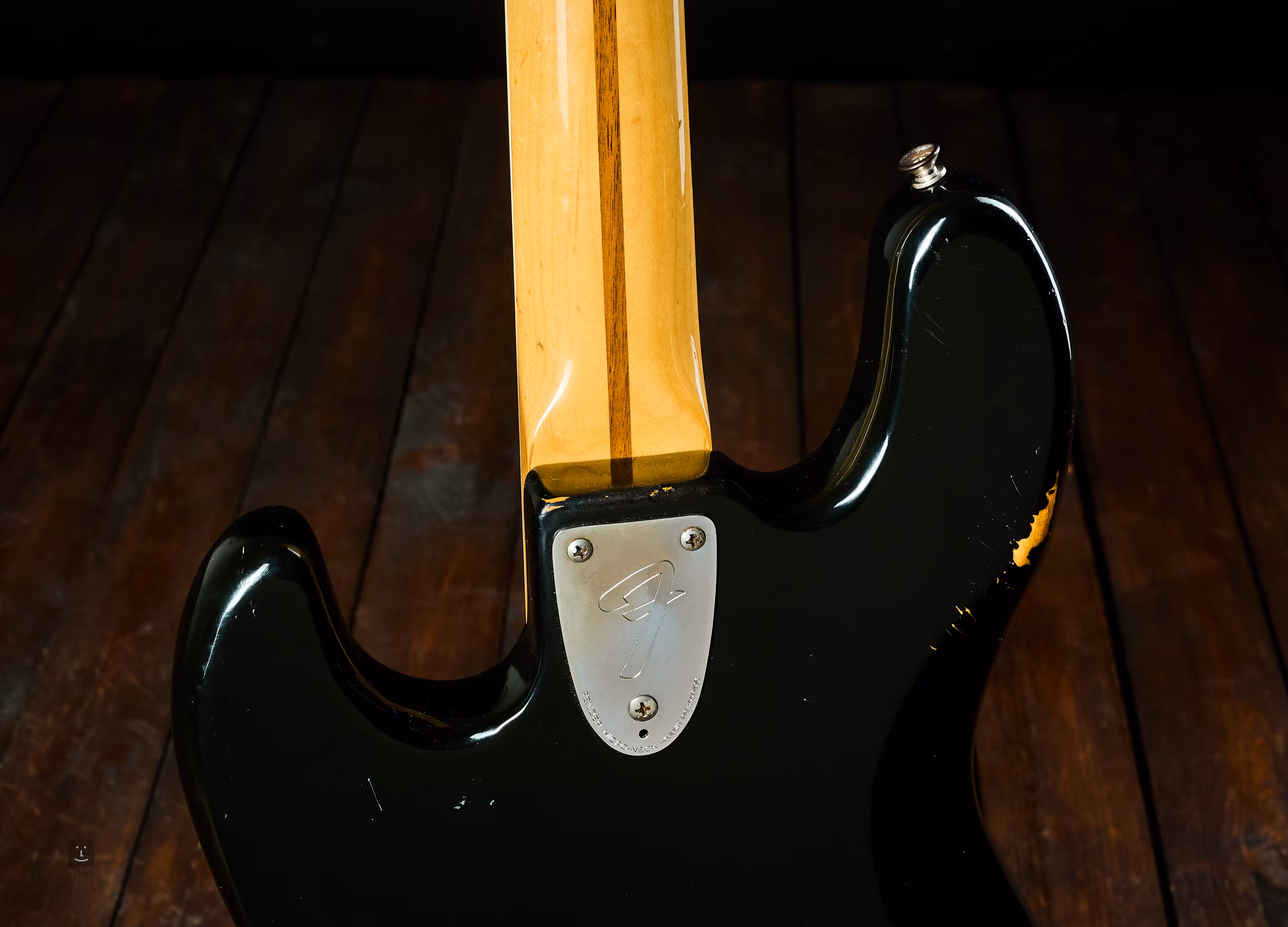 Toto je naprosto typický Jazz Bass z konce 70. let. Jasanové tělo je provedeno v černé barvě, krk je javorový s hmatníkem z palisandru, který je lemován a osazen orientačními obdélníky. Ovládání má "stratovské" knoflíky.