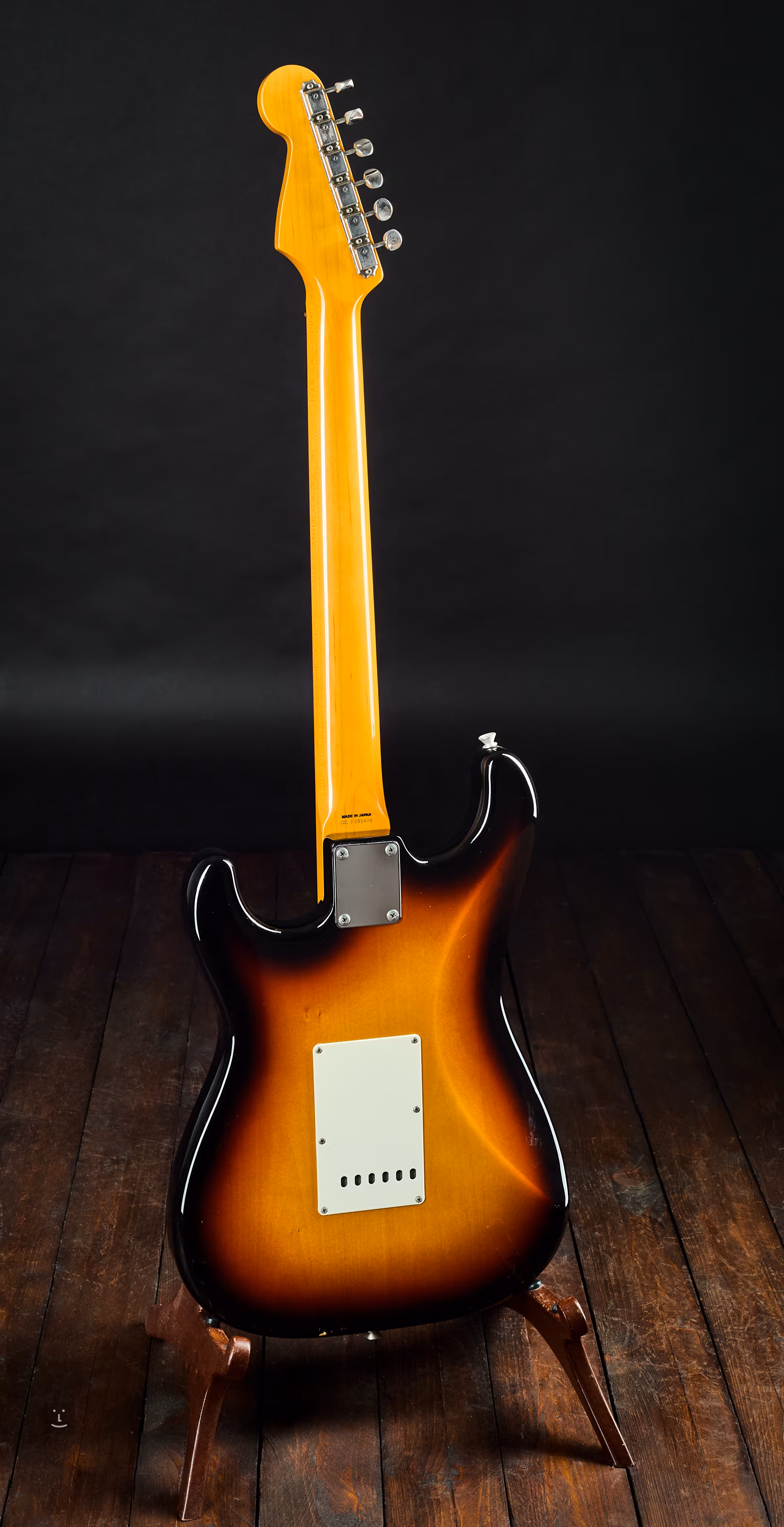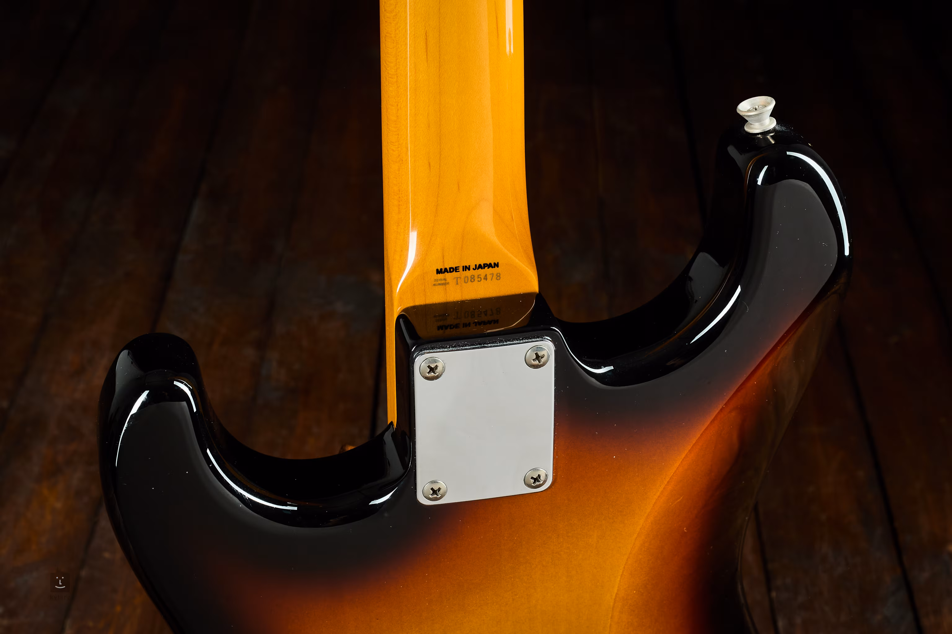 Stratocaster vyrobený v továrně Fujigen s vyhledávaným štítkem Made in Japan. Vzpomínka na zlatá rocková 90. léta a vynikající japonské kytary z té doby.