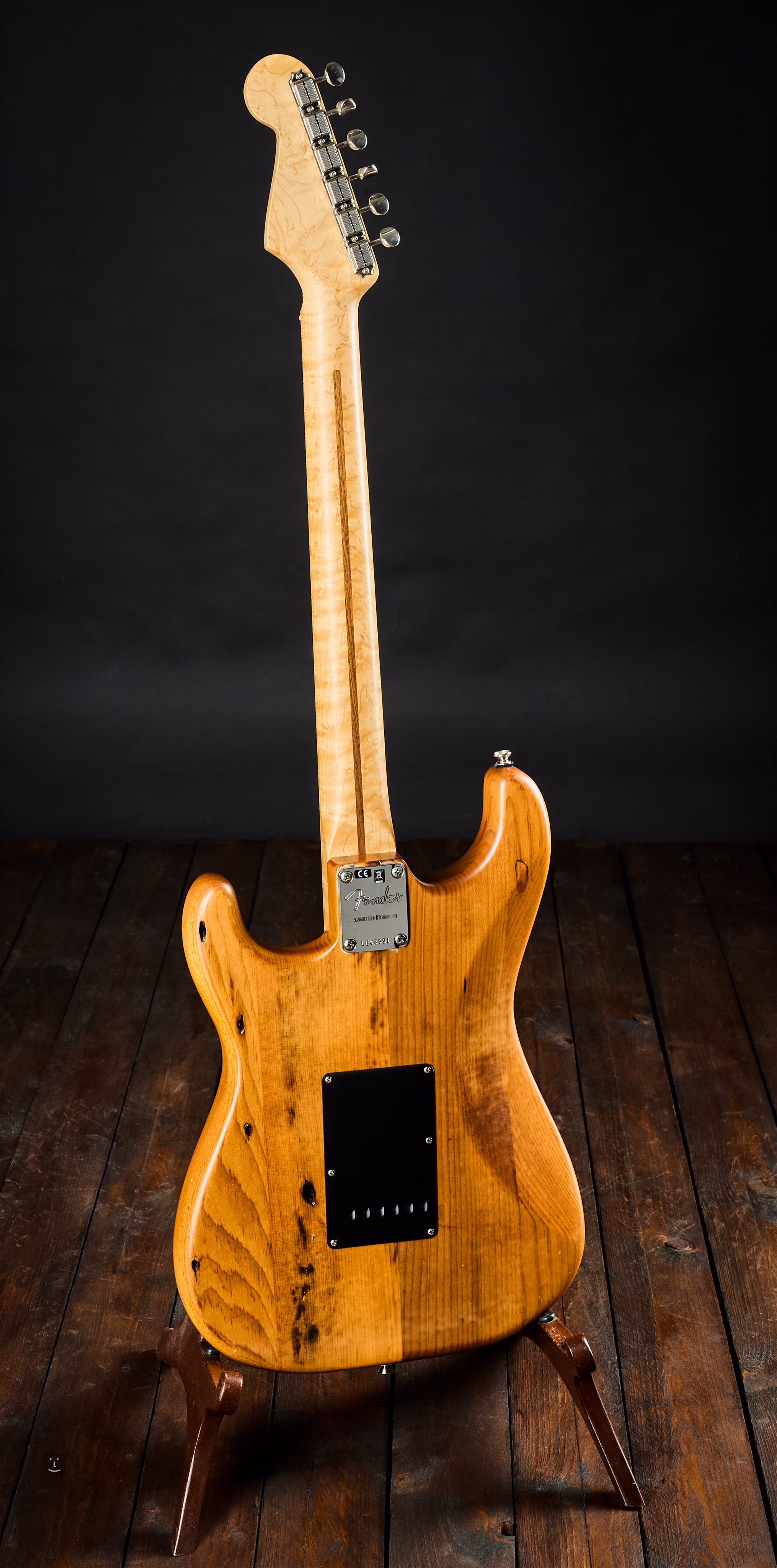 Ve dřevě se nacházejí suky a staré otvory, borovicové dřevo je ošetřené vypékáním a natřené matným urethanovým lakem. Krk je javorový s profilem D, radius 9,5". Snímače jsou singly Pure Vintage '59 Single-Coil Strat zapojené naprosto klasicky přes pětipolohový přepínač.