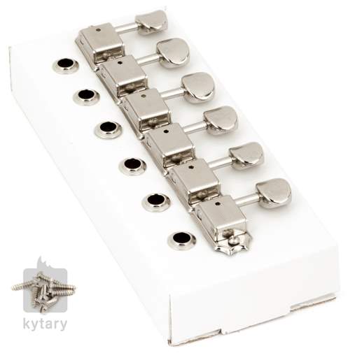 Kompletní sada kytarových mechanik American Vintage Stratocaster/Telecaster Tuning Machines, Nickel od renomované společnosti Fender je určena pro elektrické kytary typu Stratocaster nebo Telecaster ze sérií American Vintage (USA), Classic nebo Road Worn (Mexiko). Jedná se o kvalitní mechaniky ve vintage stylu, které vaší kytaře dodají autentický retro vibe a zároveň se postarají o přesné a stabilní ladění. Vyrobeny jsou z odolné oceli a disponují převodovým poměrem 15:1. Součástí balení je veškerý montážní hardware. Dopřejte své kytaře to nejlepší s kytarovou mechanikou značky Fender!