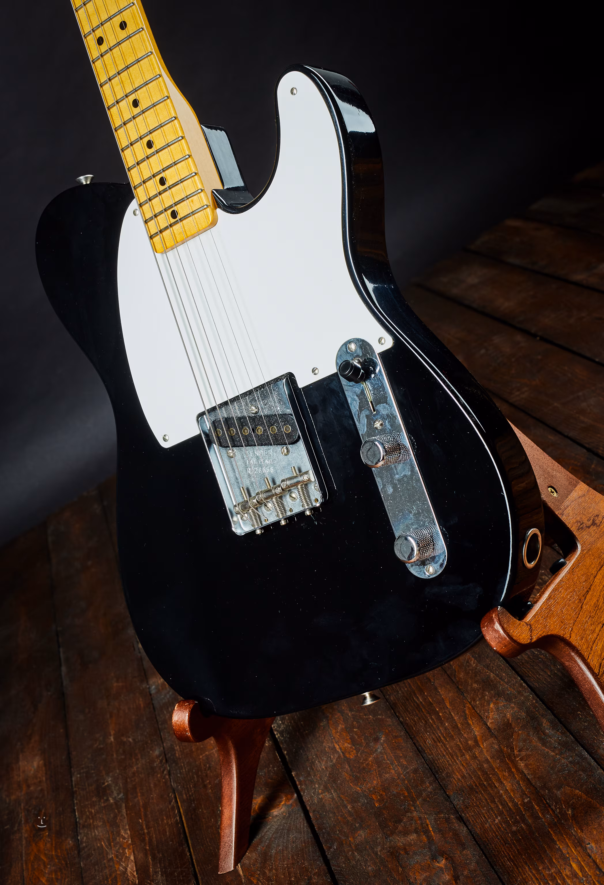 Fender Esquire s jedním snímačem a tělem z borovice je nejen první “solid-body” elektrickou kytarou Fender, ale také pravděpodobně tou nejvzácnější. Během necelého roku Fender změnil materiál těla z borovice na jasan a finiš na “Blonde”, přesto se původní model Esquire nesmazatelně zapsal do historie populární hudby. Custom Shop Vintage Custom 1950 Pine Esquire, NOS, Aged Black z dílen Fender Custom Shopu je skutečně věrnou replikou originálu.