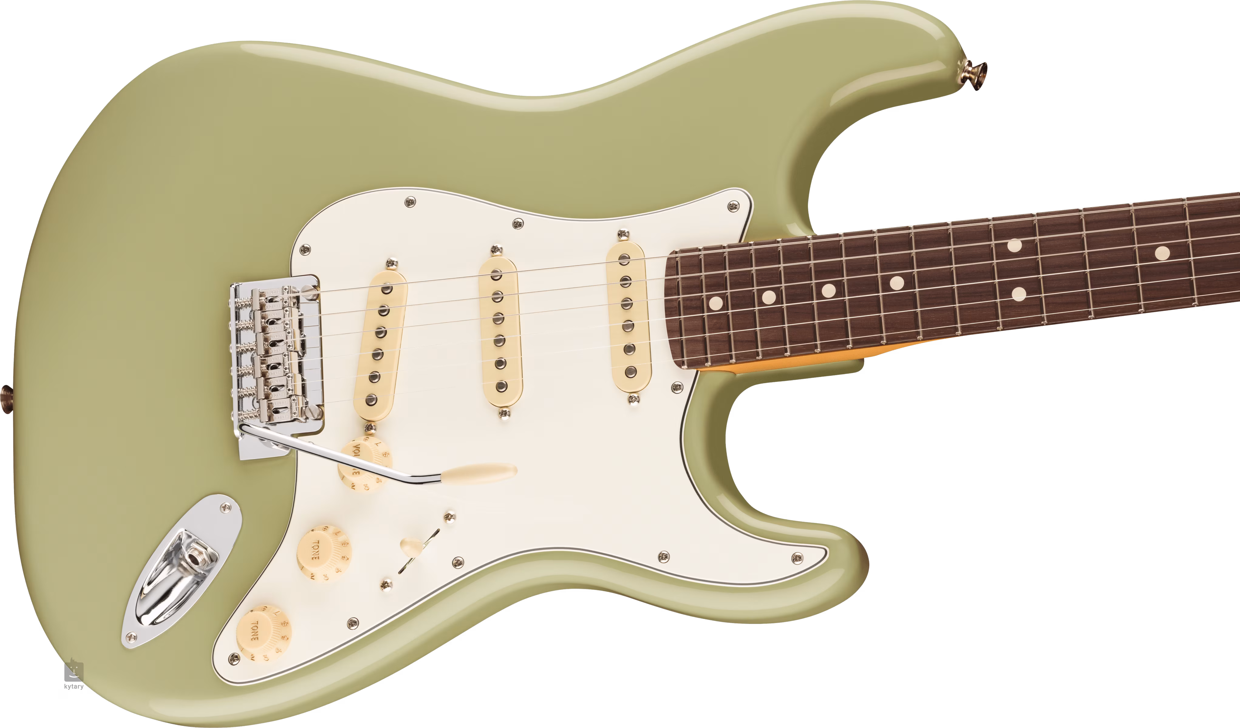 Tři Player Series single-coil snímače s Alnico 5 magnety poskytují kytaře modernější Fender feel a zvuk, který oceníte v široké škále hudebních stylů. S charakterem zvuku lze pracovat pomocí ovladačů hlasitosti, tónové clony a pětipolohového přepínače snímačů. Struny jsou uchyceny v mechanikách ClassicGear s převodovým poměrem 18:1 a v synchronizovaném “2-point” tremolu s ocelovými sedly. Stylový vzhled kytary podtrhuje světlý třívrstvý pickguard a finiš Birch Green.