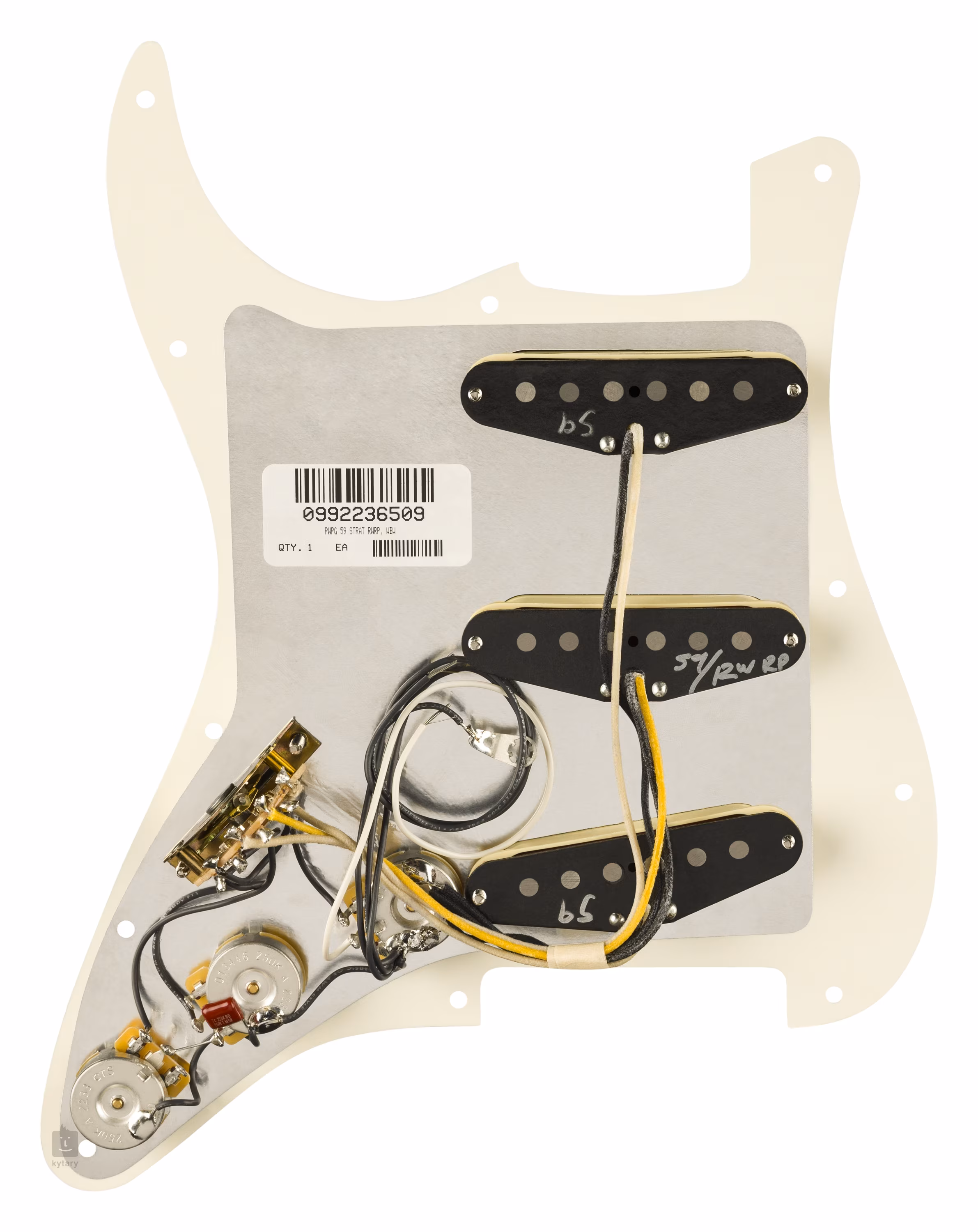 Fender Pre-Wired Strat Pickguard, Pure Vintage '59 w/ RWRP Middle