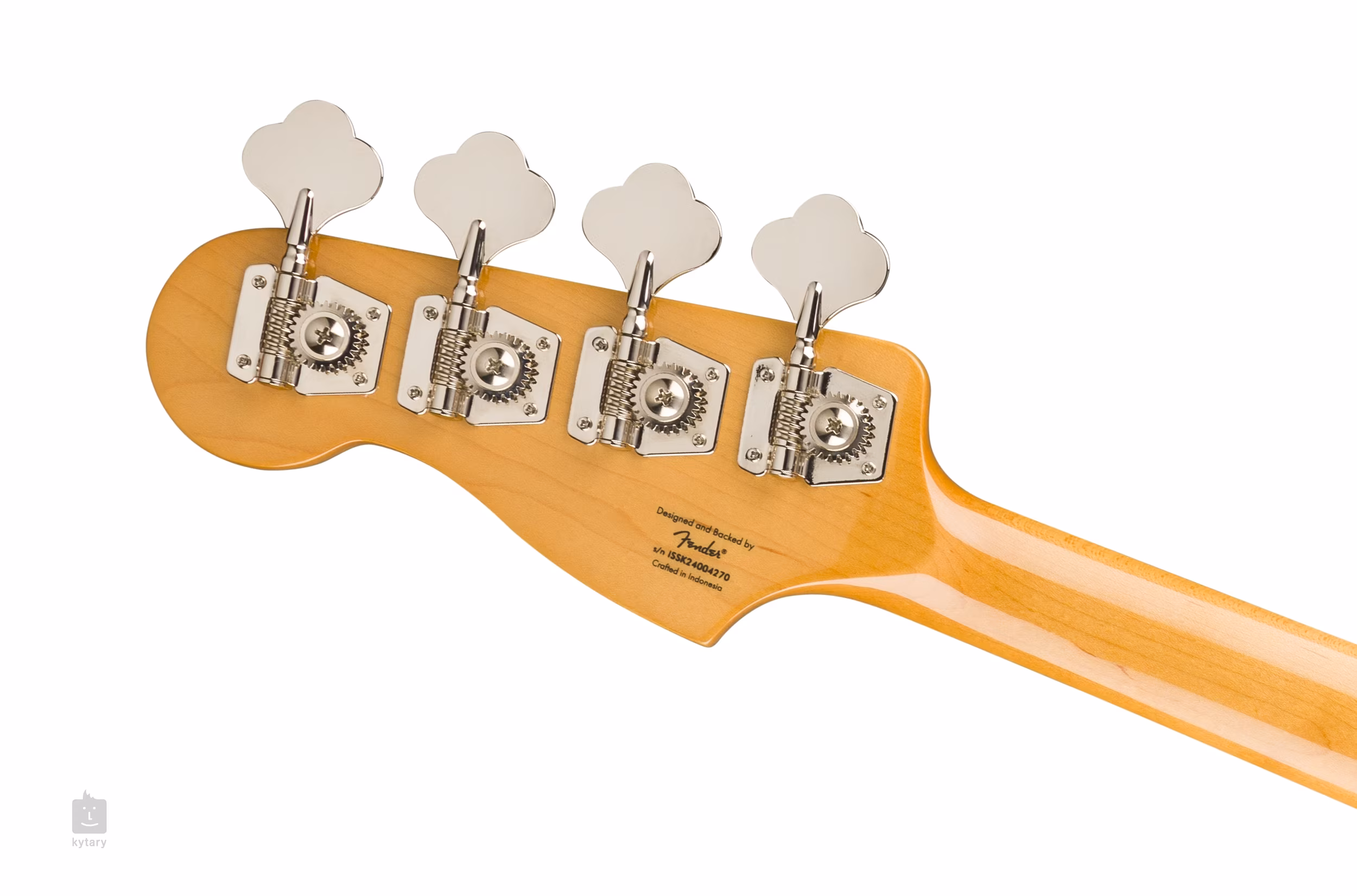 Elektrická baskytara FSR 60s Precision Bass LRL AZG z limitované řady značky (Fender Special Run) je ztělesněním estetiky a zvuku PB modelů z šedesátých let minulého století. Topolové tělo baskytary zdobí barevná úprava Aztec Gold a lesklý polyuretanový lak. K javorovému hmatníku s pohodlným “C” profilem je přilepen hmatník z fíkovníku osazený dvaceti pražci velikosti Narrow Tall.