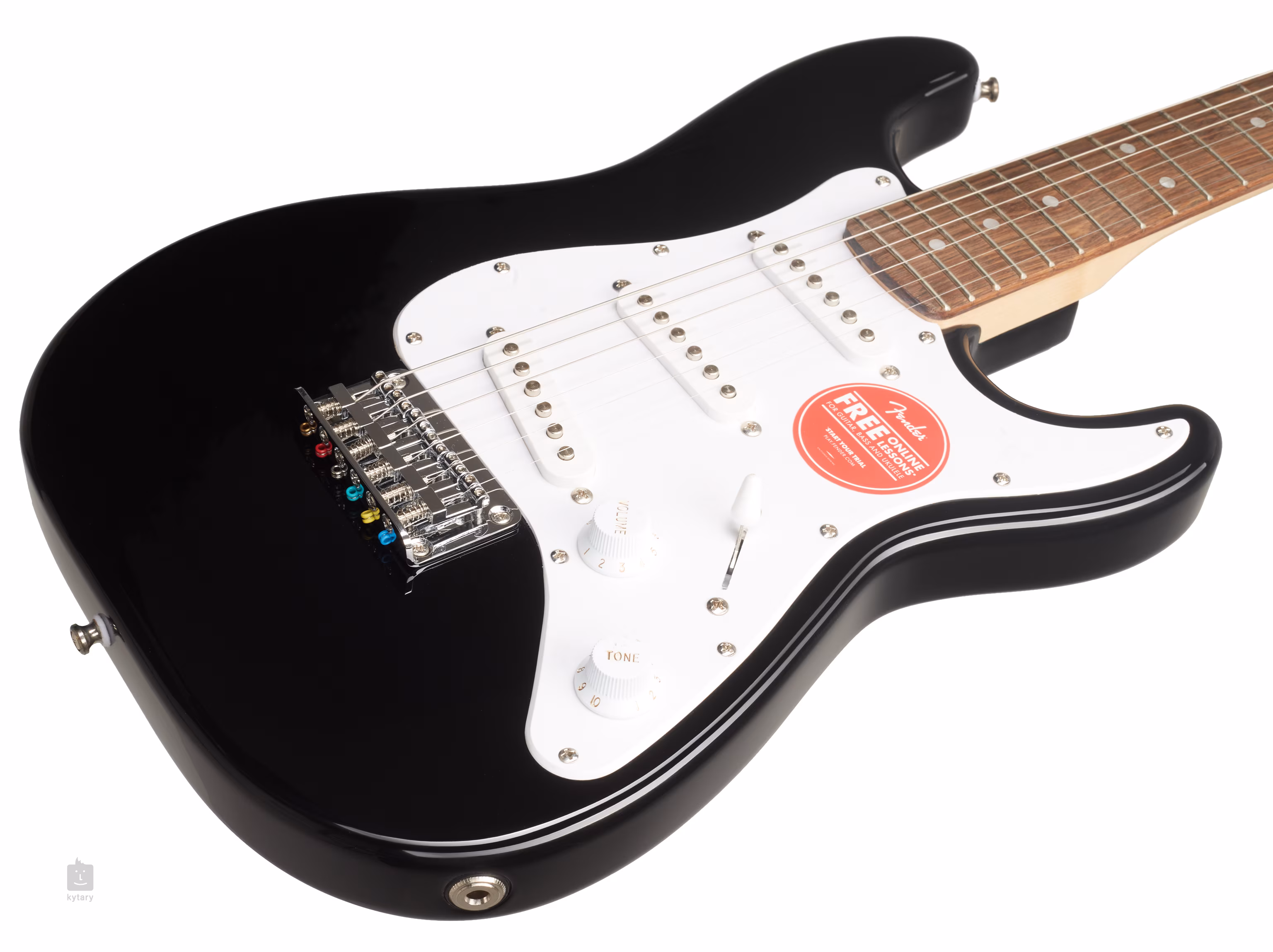 Elektrická kytara Fender Squier Mini představuje se svým tříčtvrtečním rozměrem jak ideálního společníka na hudební toulky, tak skvělý nástroj pro vaše děti. Konkrétně tento nástroj disponuje plošším krkem, užším tělem a vylepšenými ladicími mechanikami. Kromě toho zde naleznete vše, co očekáváte od kytar typu Stratocaster, tj. tři single-coil snímače, pětipolohový přepínač, ovladače hlasitosti a tónové clony aj.